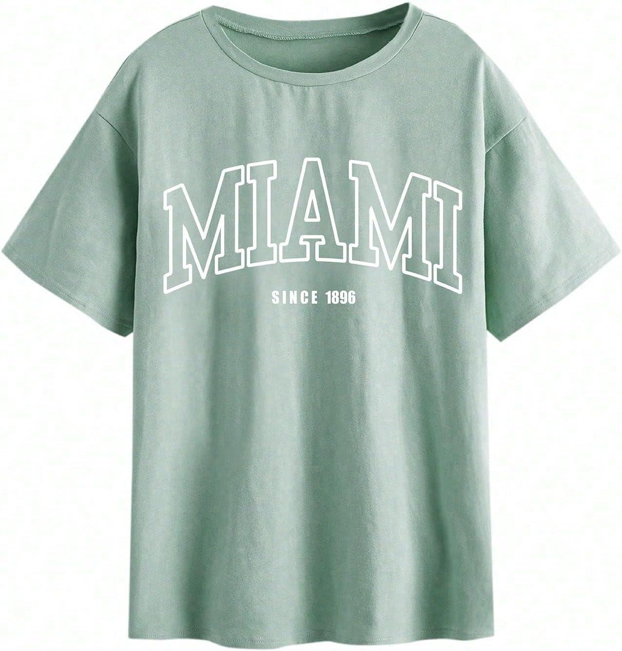 SOLY HUX Women’s Oversized T Shirts Graphic Tees Casual Vintage Summer Tops Half Sleeve Shirts(Mint Green Letter Graphic)
