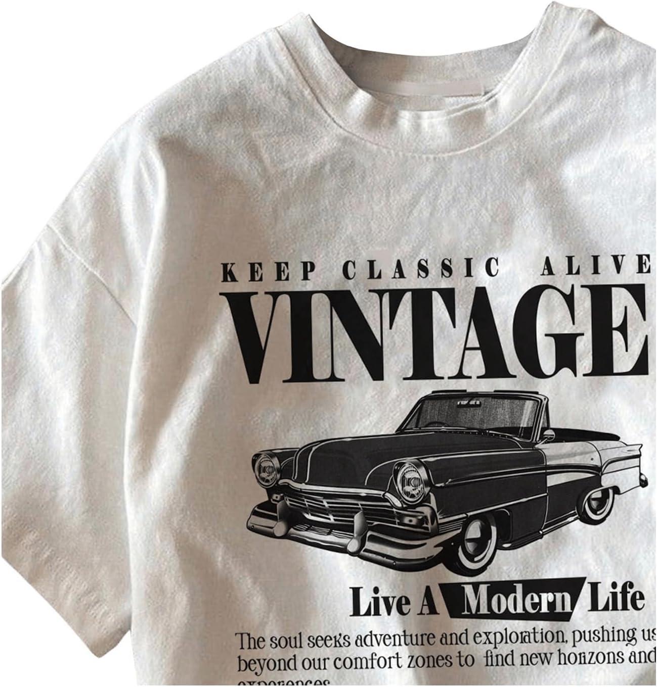 SOLY HUX Women’s Oversized T Shirts Graphic Tees Casual Vintage Summer Tops Half Sleeve Shirts(White Car)