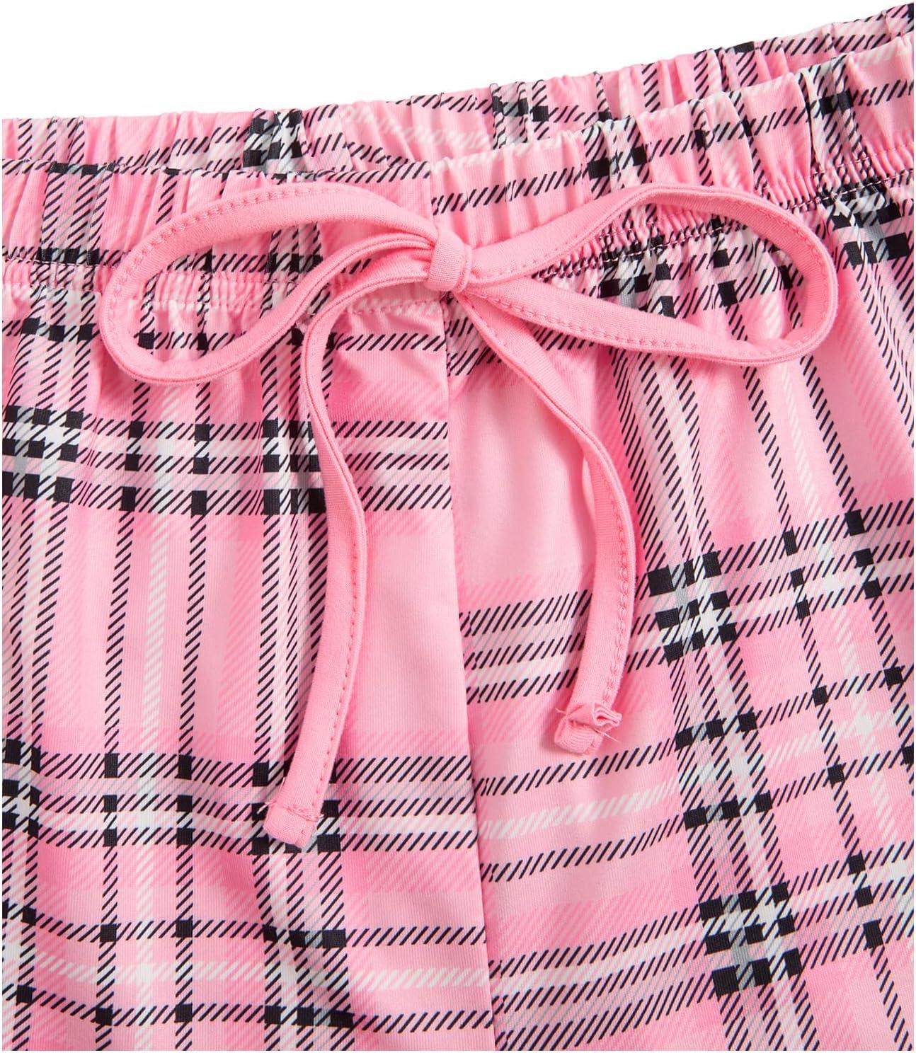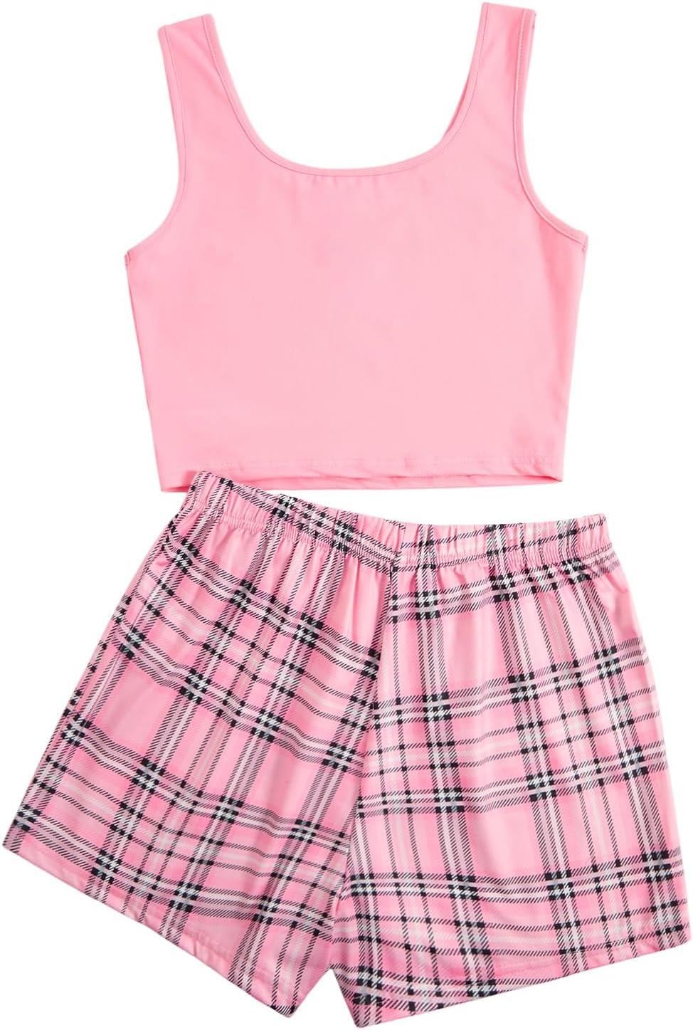 SOLY HUX Women’s Pajama Sets 2 Piece Lounge Sets Button Tank Top and Plaid Shorts Sleepwear(Pink Plaid)