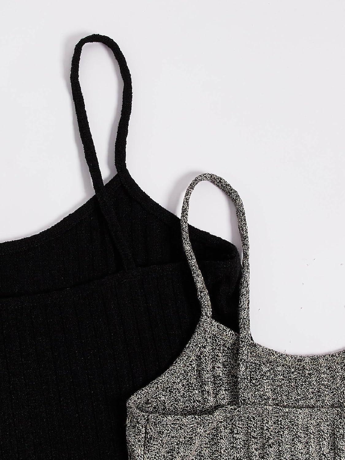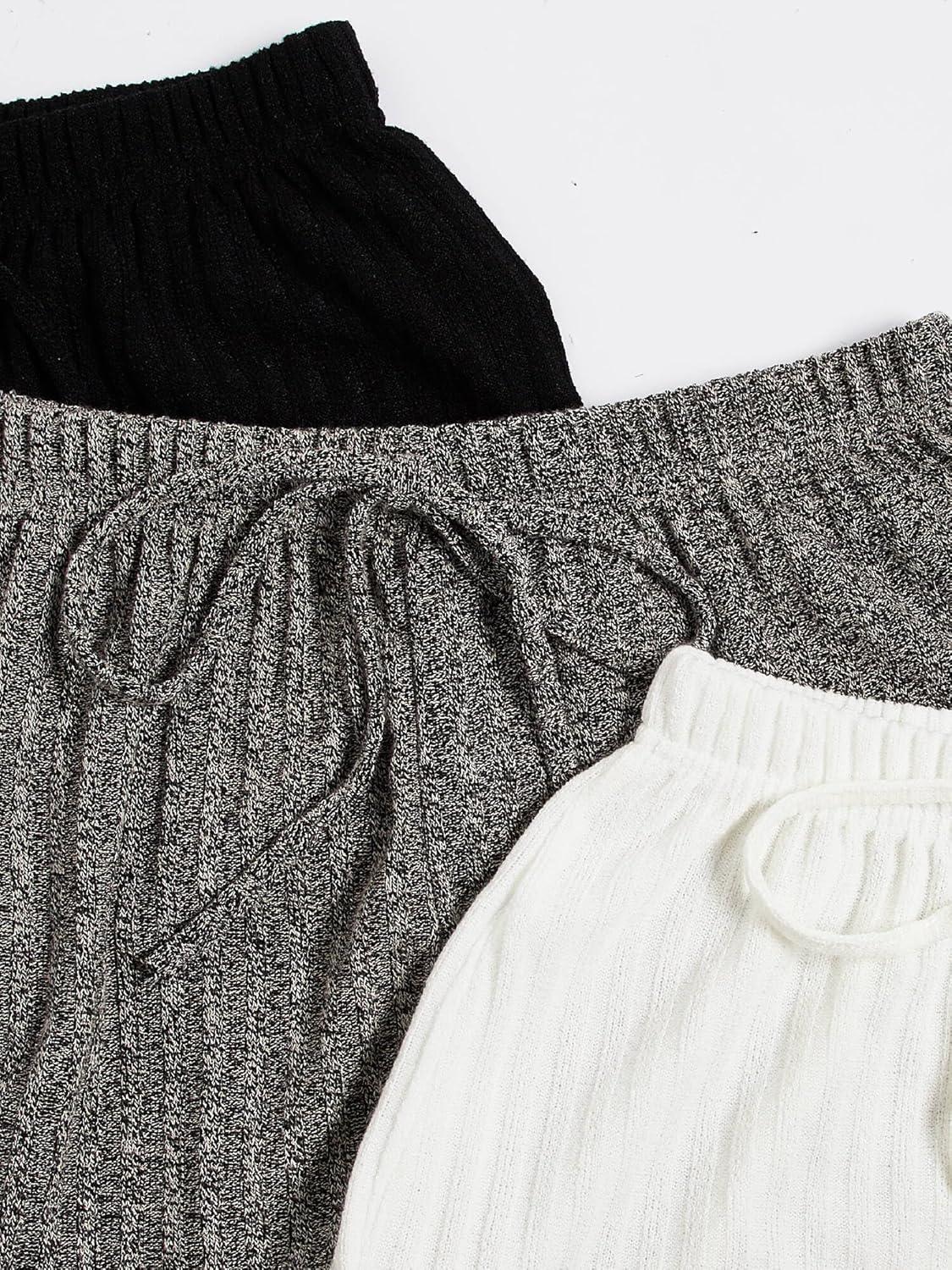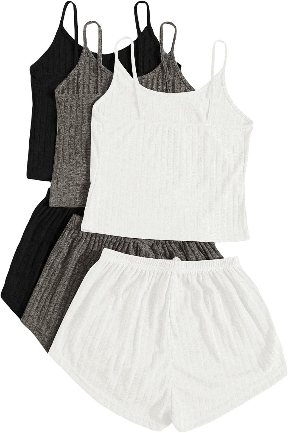 SOLY HUX Womens Pajama Sets Lounge Sets Ribbed Knit Cami Crop Top and Shorts Sleepwear PJ 3 Sets(Black Grey White)