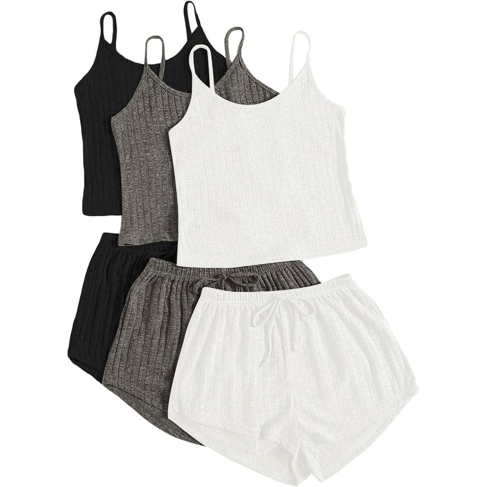 SOLY HUX Womens Pajama Sets Lounge Sets Ribbed Knit Cami Crop Top and Shorts Sleepwear PJ 3 Sets(Multicoloured 3 Pack)