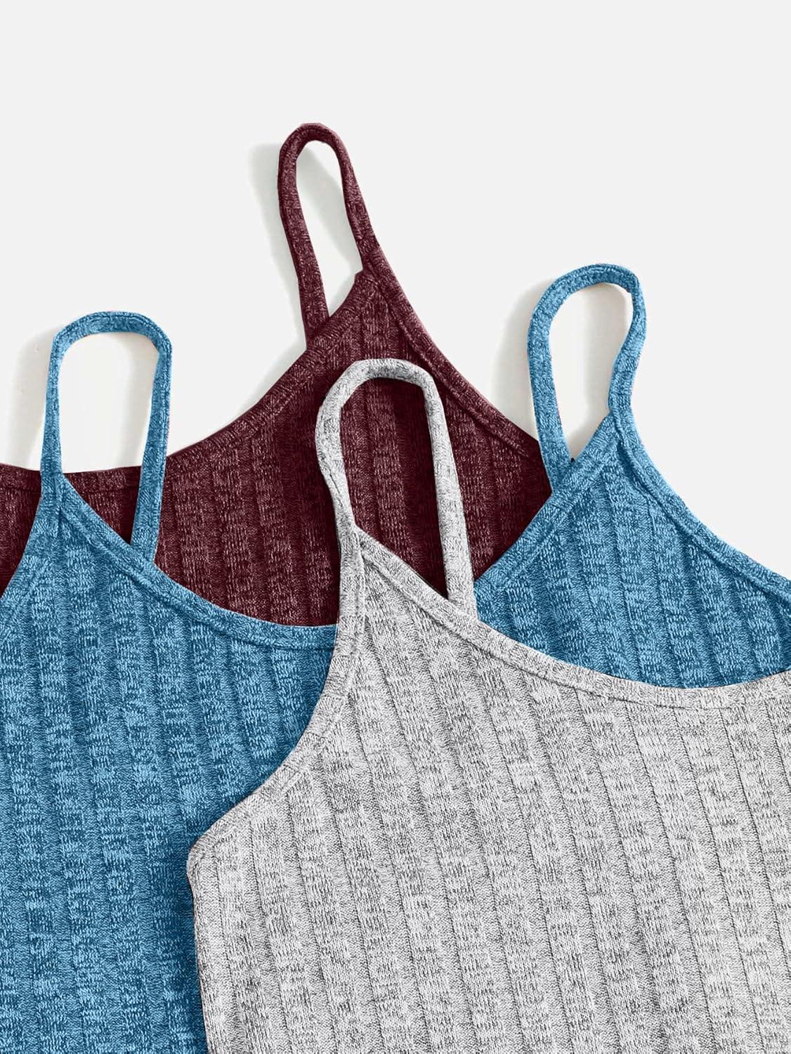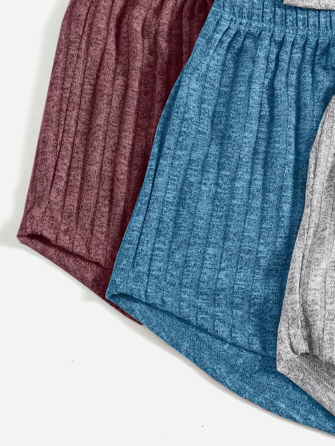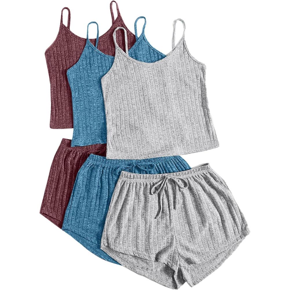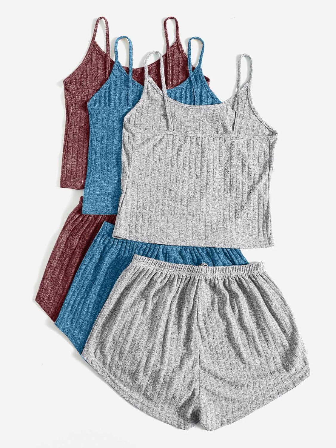 SOLY HUX Womens Pajama Sets Lounge Sets Ribbed Knit Cami Crop Top and Shorts Sleepwear PJ 3 Sets(Red Blue Gey)