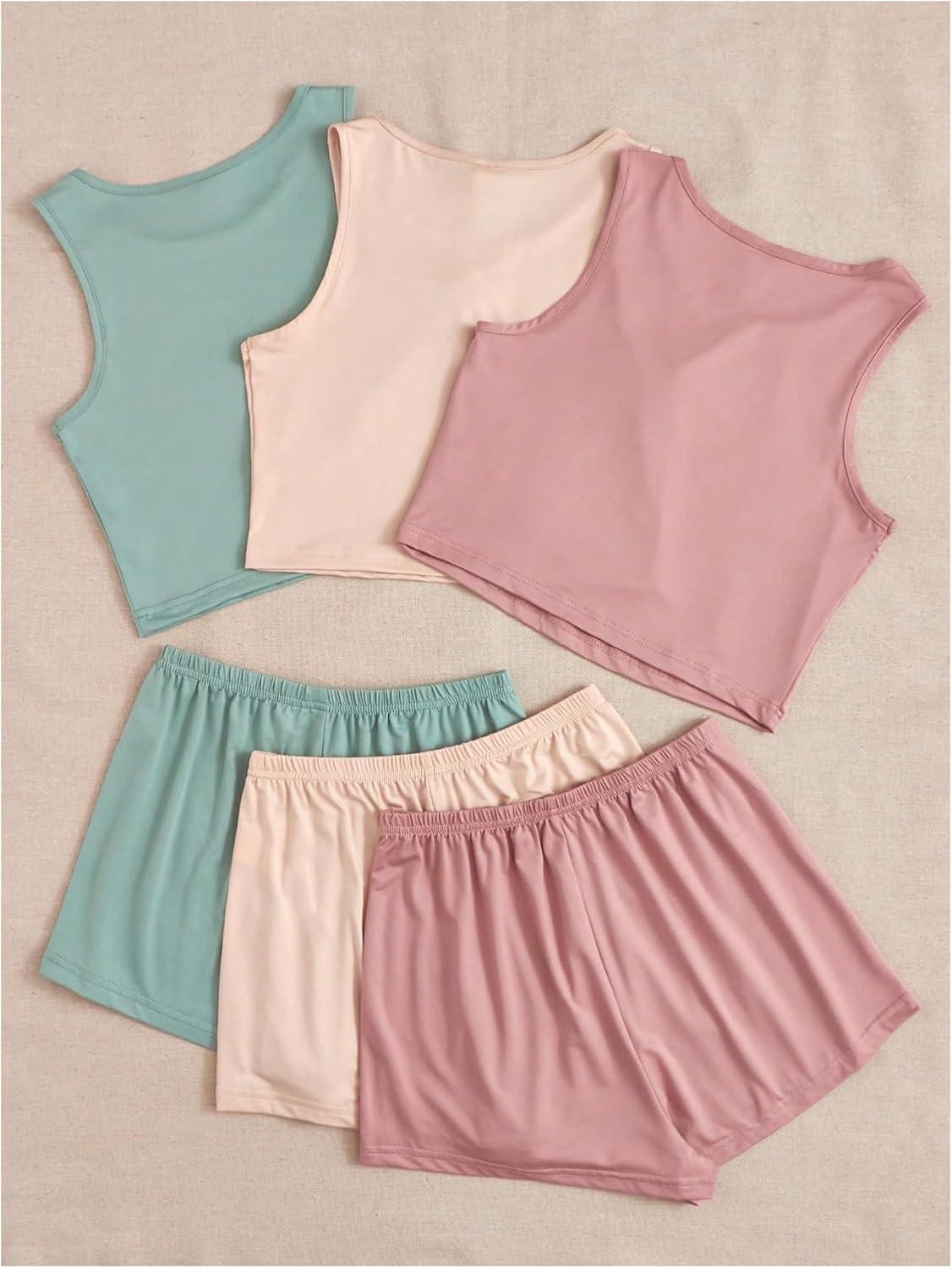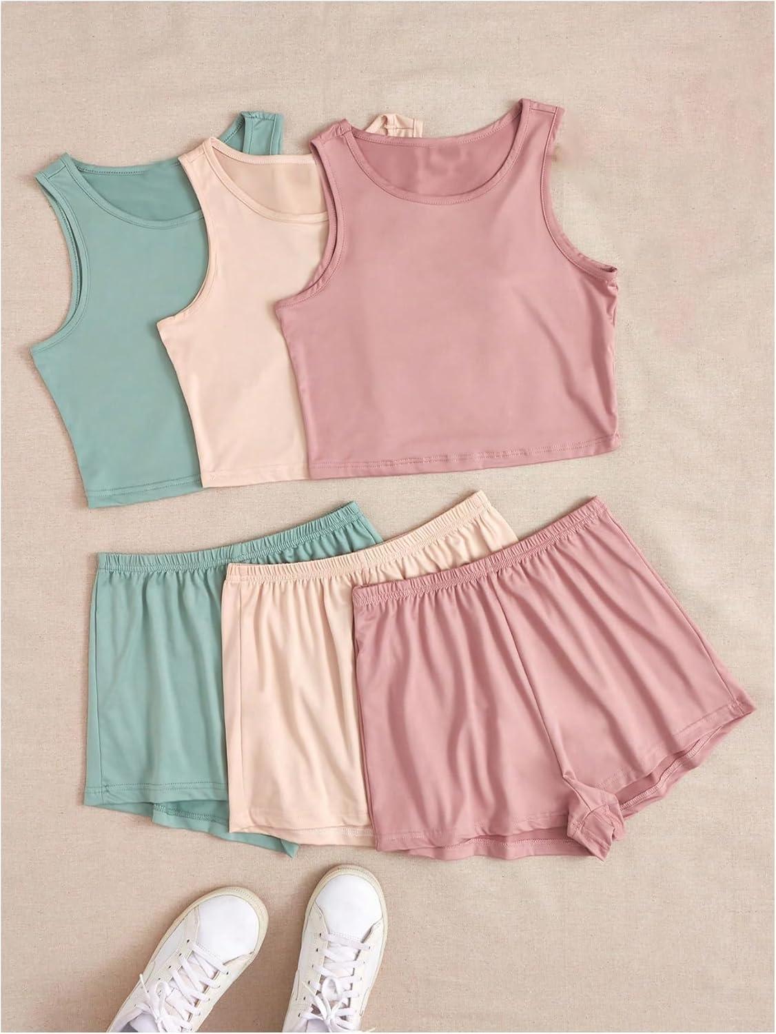SOLY HUX Women’s Pajamas 6 Piece Sleeveless Tank Top and Shorts Lounge Set Sleepwear(Green Grey Multi)