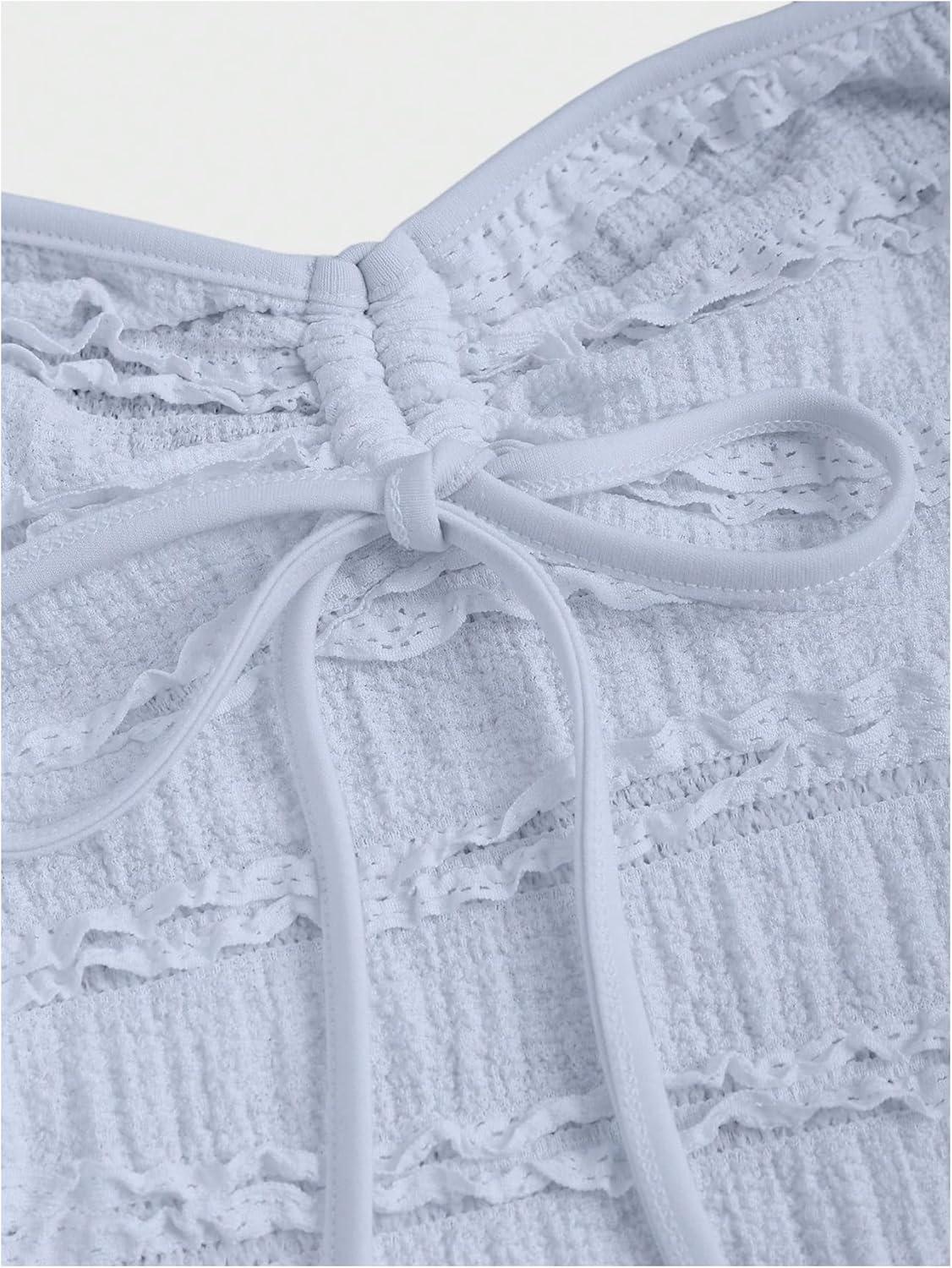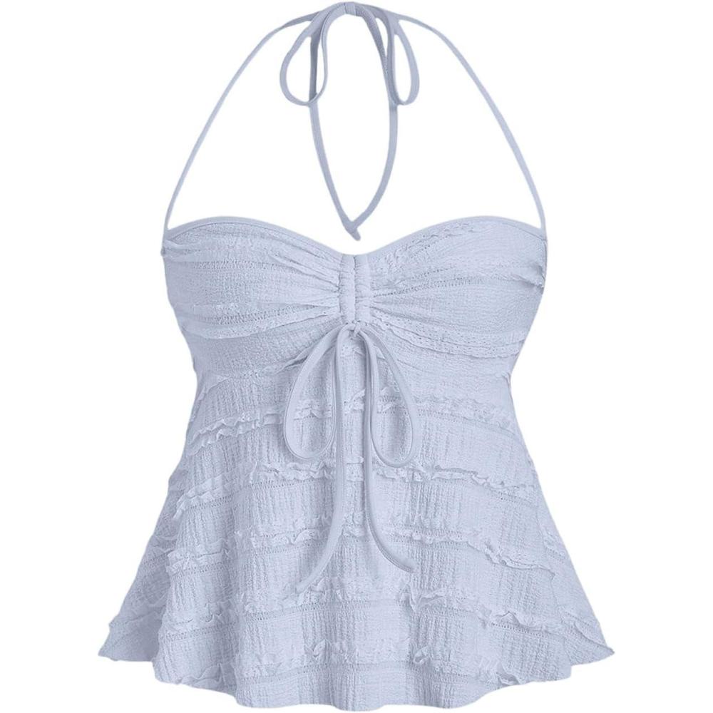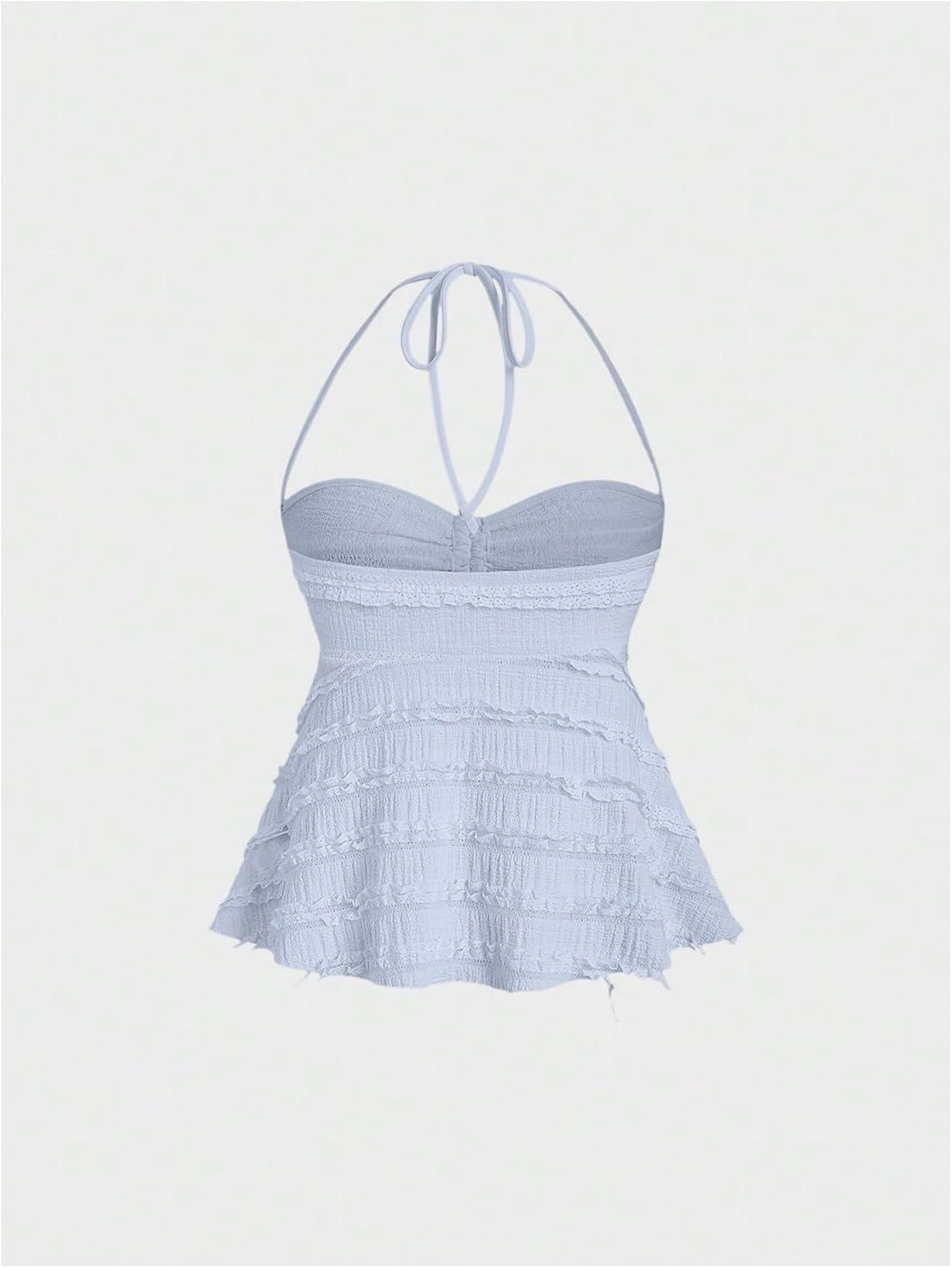 SOLY HUX Women’s Peplum Halter Crop Tops Y2K Drawstring Tie Ruched Dressy Casual Spaghetti Strap Cami Top(Light Blue)