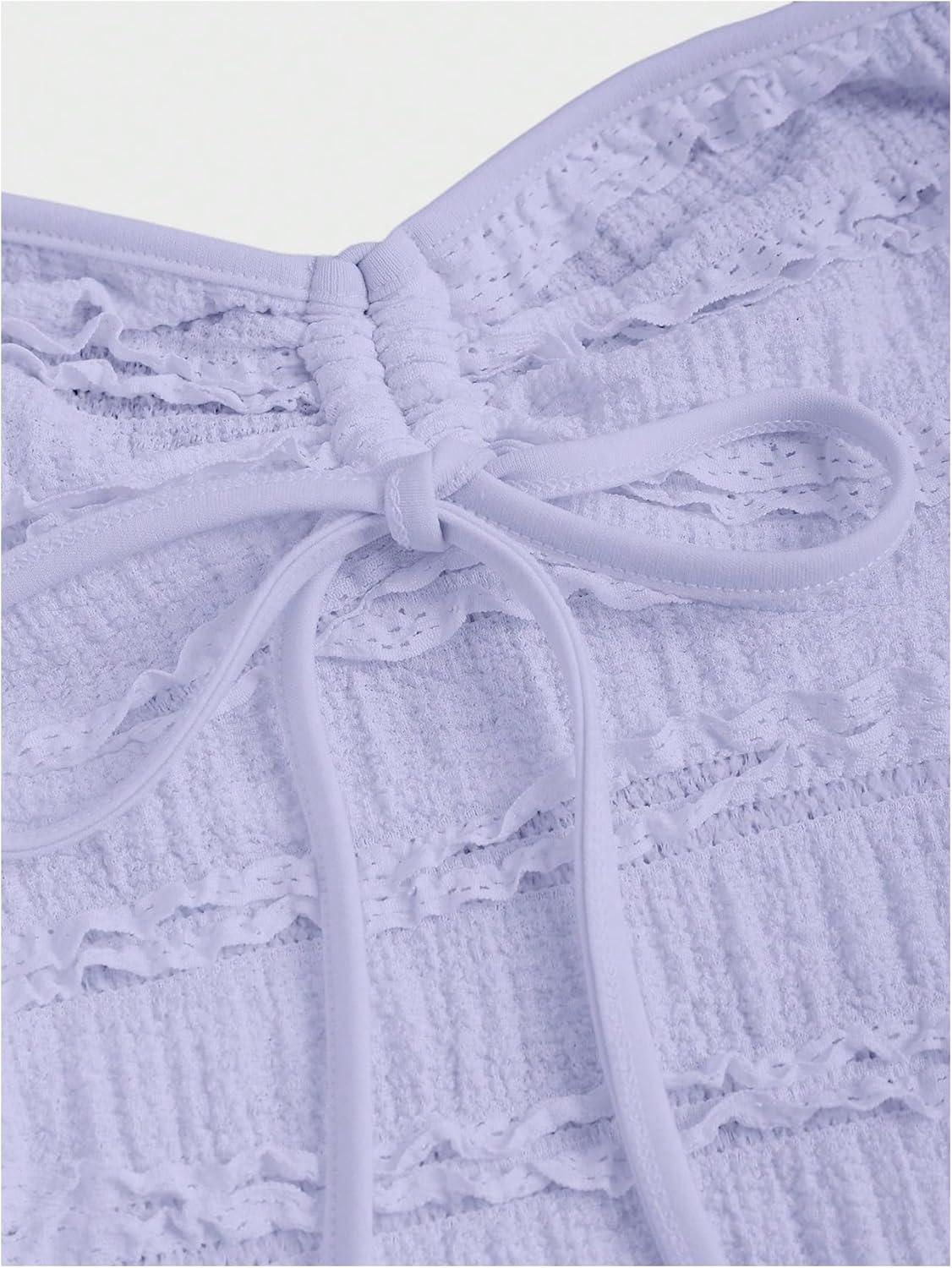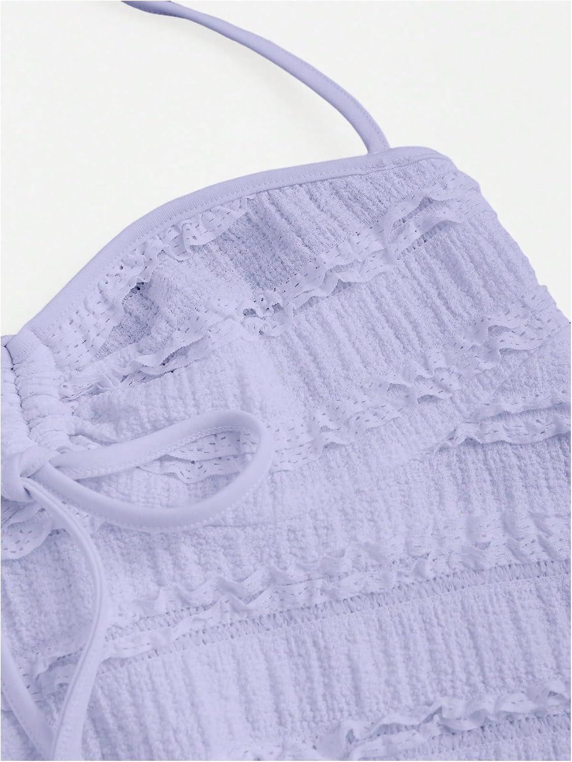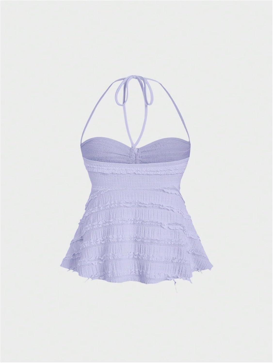 SOLY HUX Women’s Peplum Halter Crop Tops Y2K Drawstring Tie Ruched Dressy Casual Spaghetti Strap Cami Top(Mauve Purple)