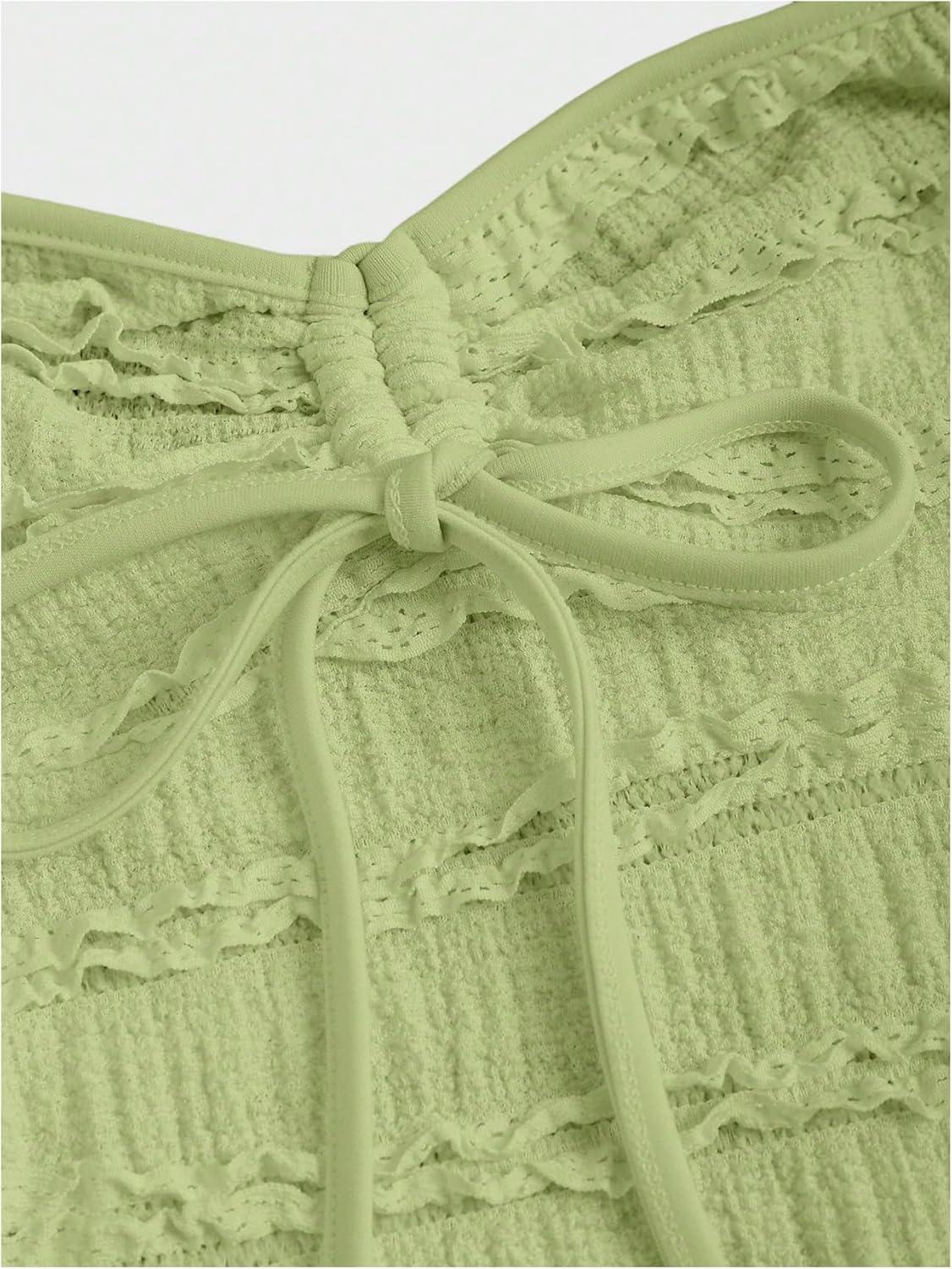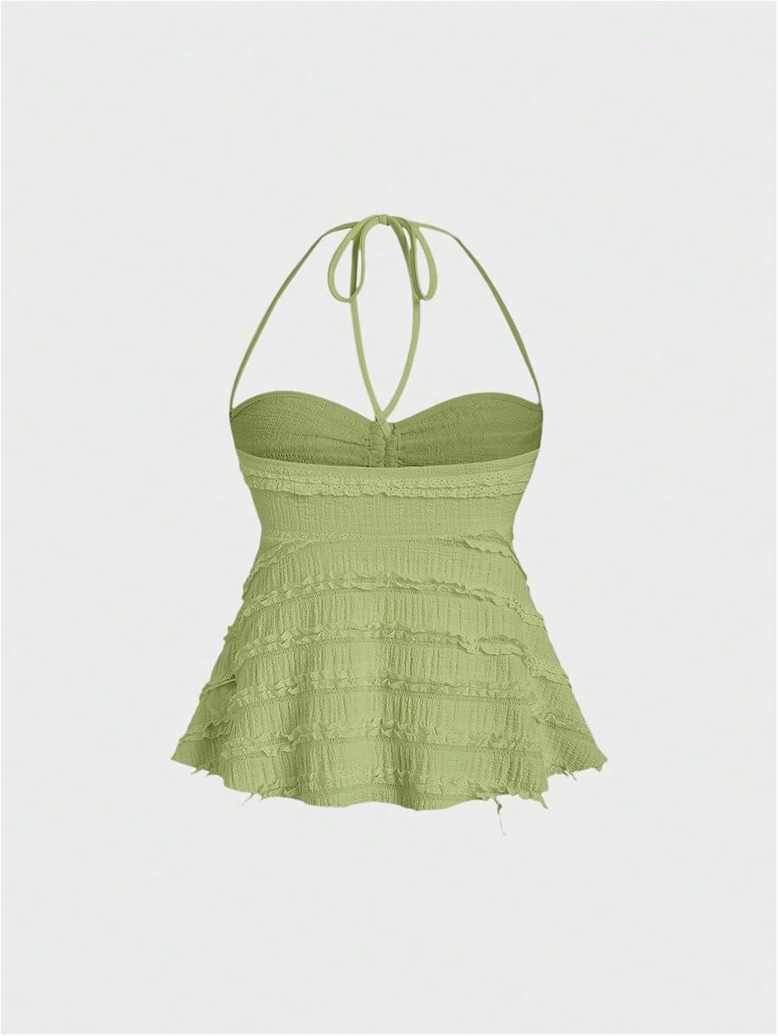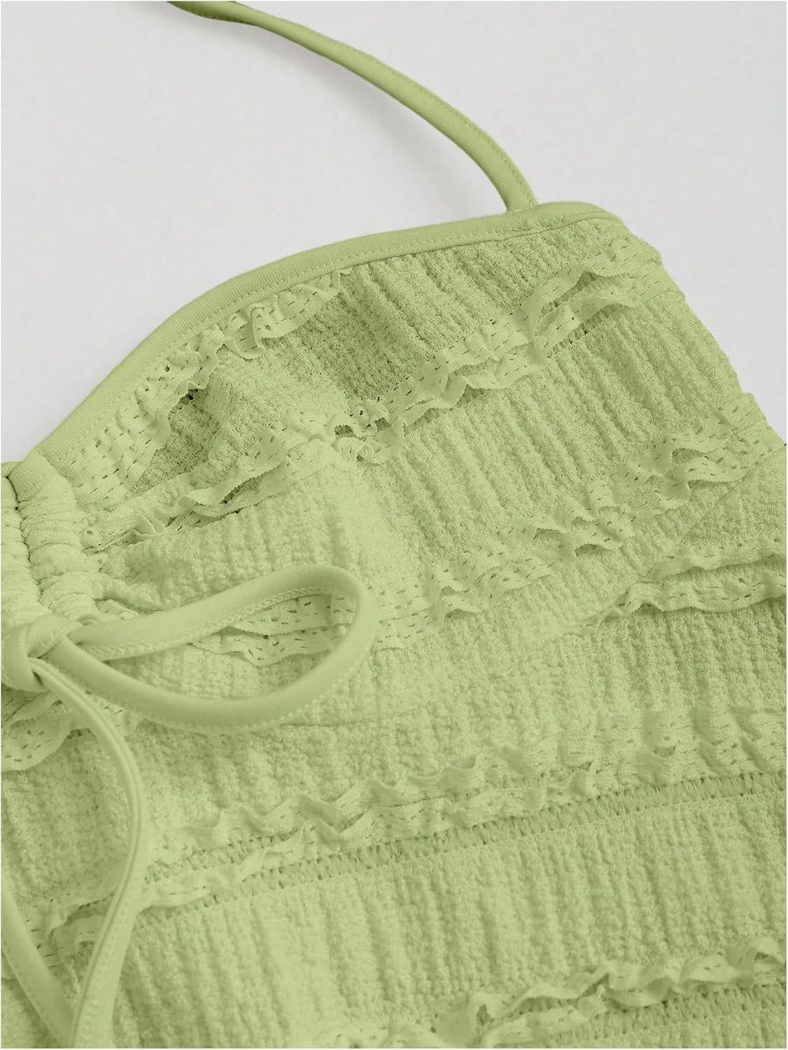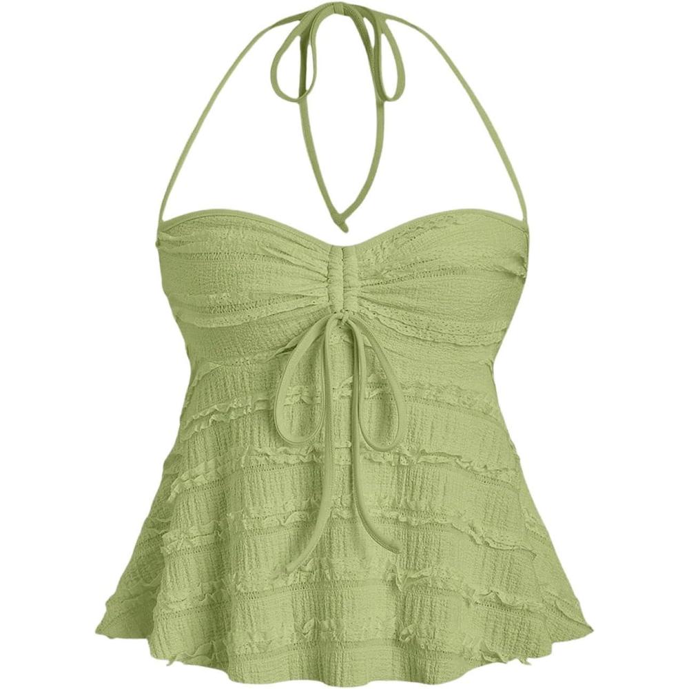 SOLY HUX Women’s Peplum Halter Crop Tops Y2K Drawstring Tie Ruched Dressy Casual Spaghetti Strap Cami Top(Mint Green)