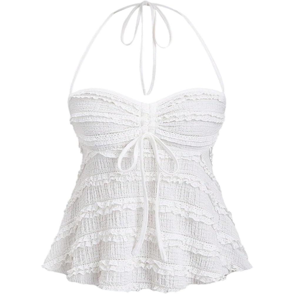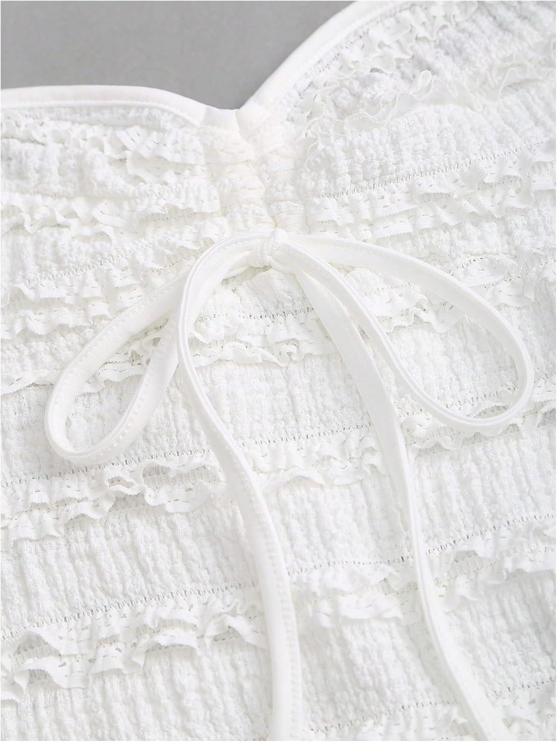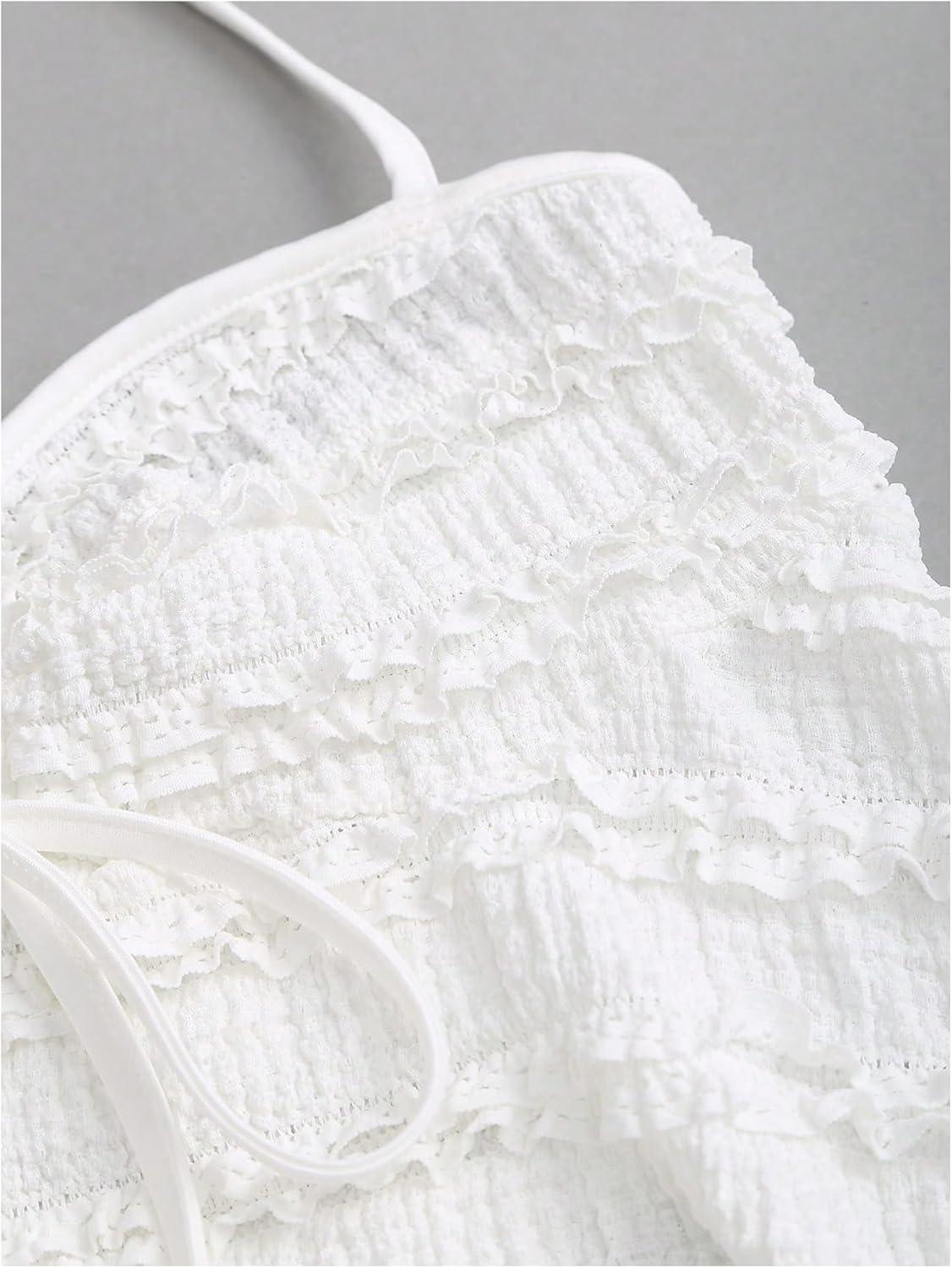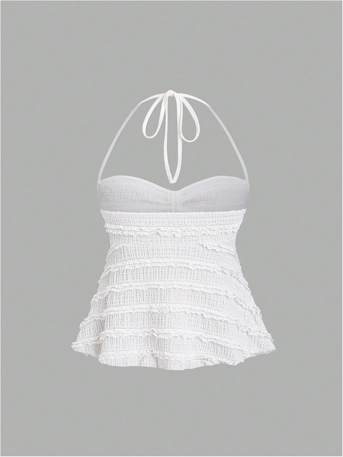 SOLY HUX Women’s Peplum Halter Crop Tops Y2K Drawstring Tie Ruched Dressy Casual Spaghetti Strap Cami Top(White)