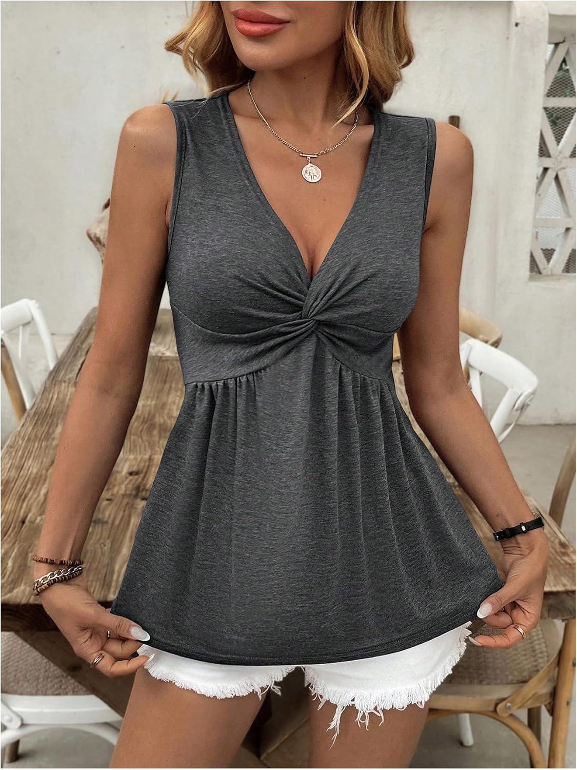 SOLY HUX Women’s Peplum Tank Top Twist Front V Neck Sleeveless Babydoll Summer Going Out Tops(Plain Dark Grey)