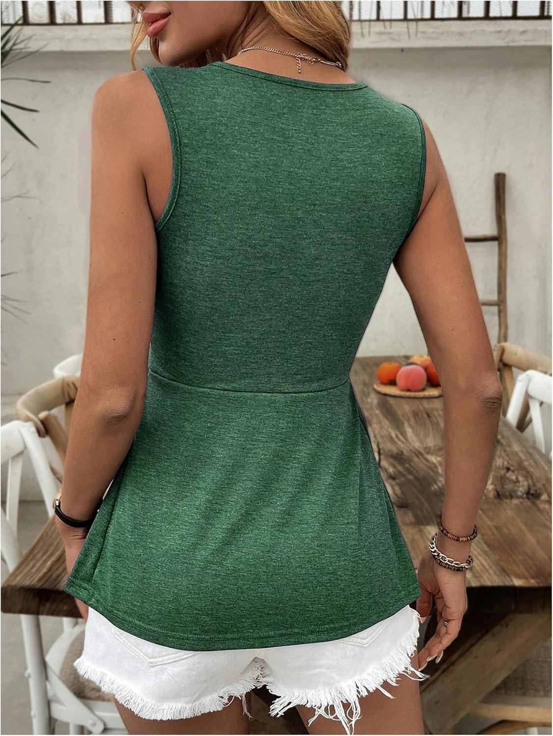 SOLY HUX Women’s Peplum Tank Top Twist Front V Neck Sleeveless Babydoll Summer Going Out Tops(Solid Dark Green)