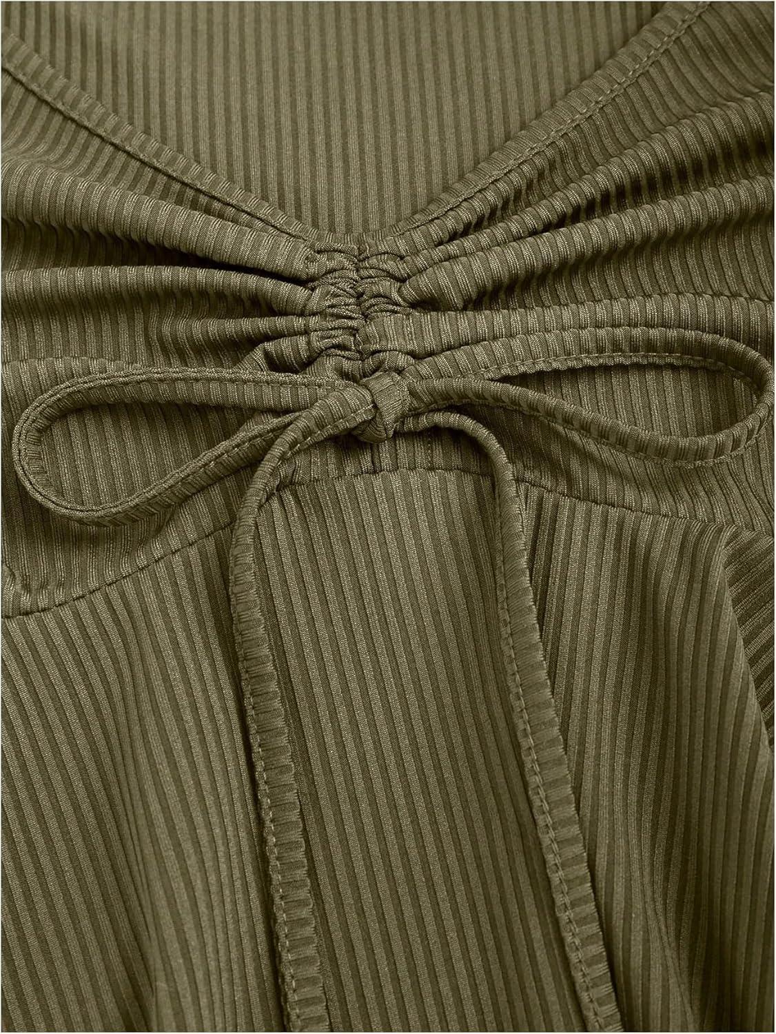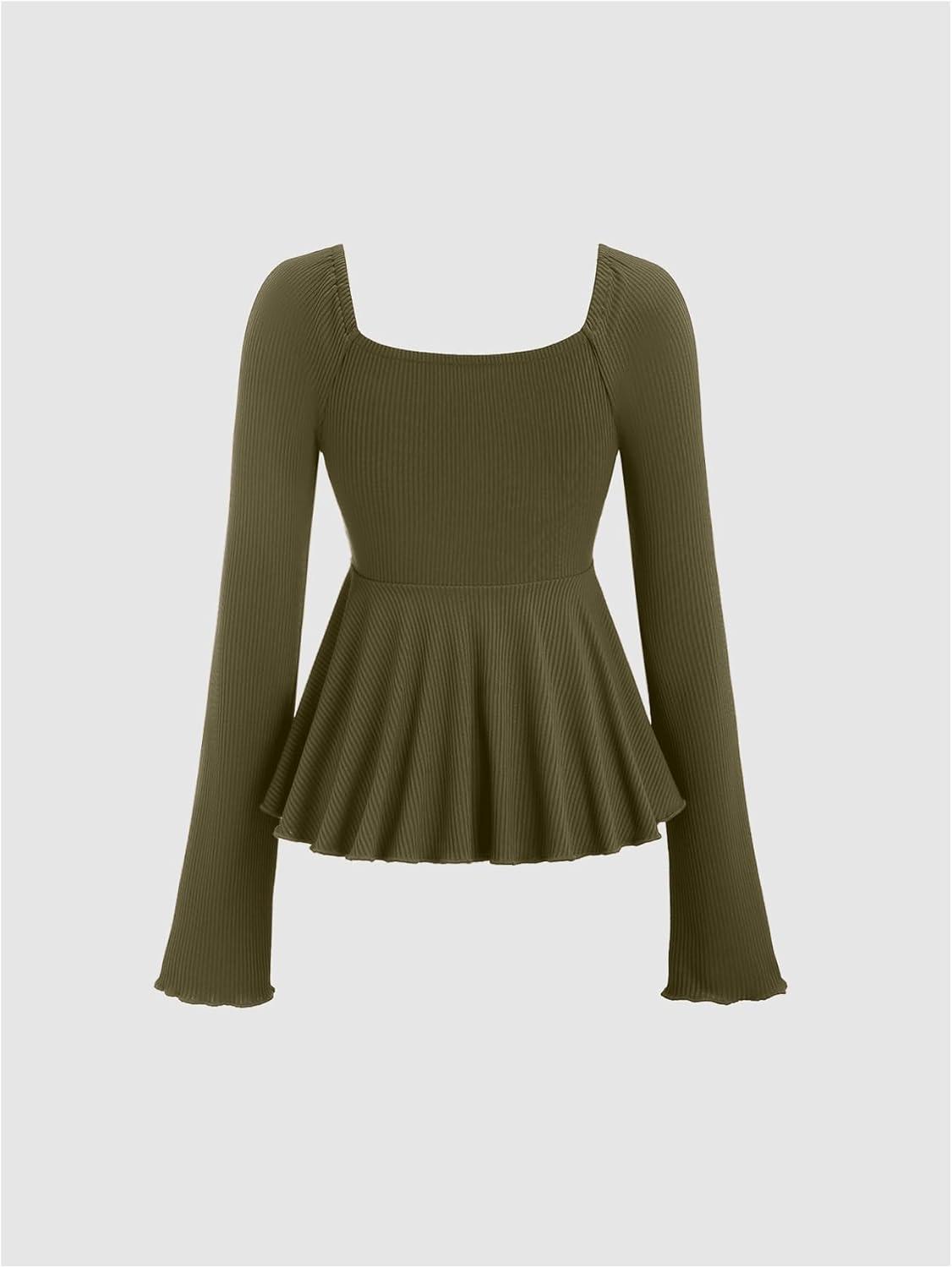 SOLY HUX Women’s Peplum Tops Long Sleeve Babydoll Shirts Y2k Cute Tie Front Sweetheart Neckline Top(Army Green)