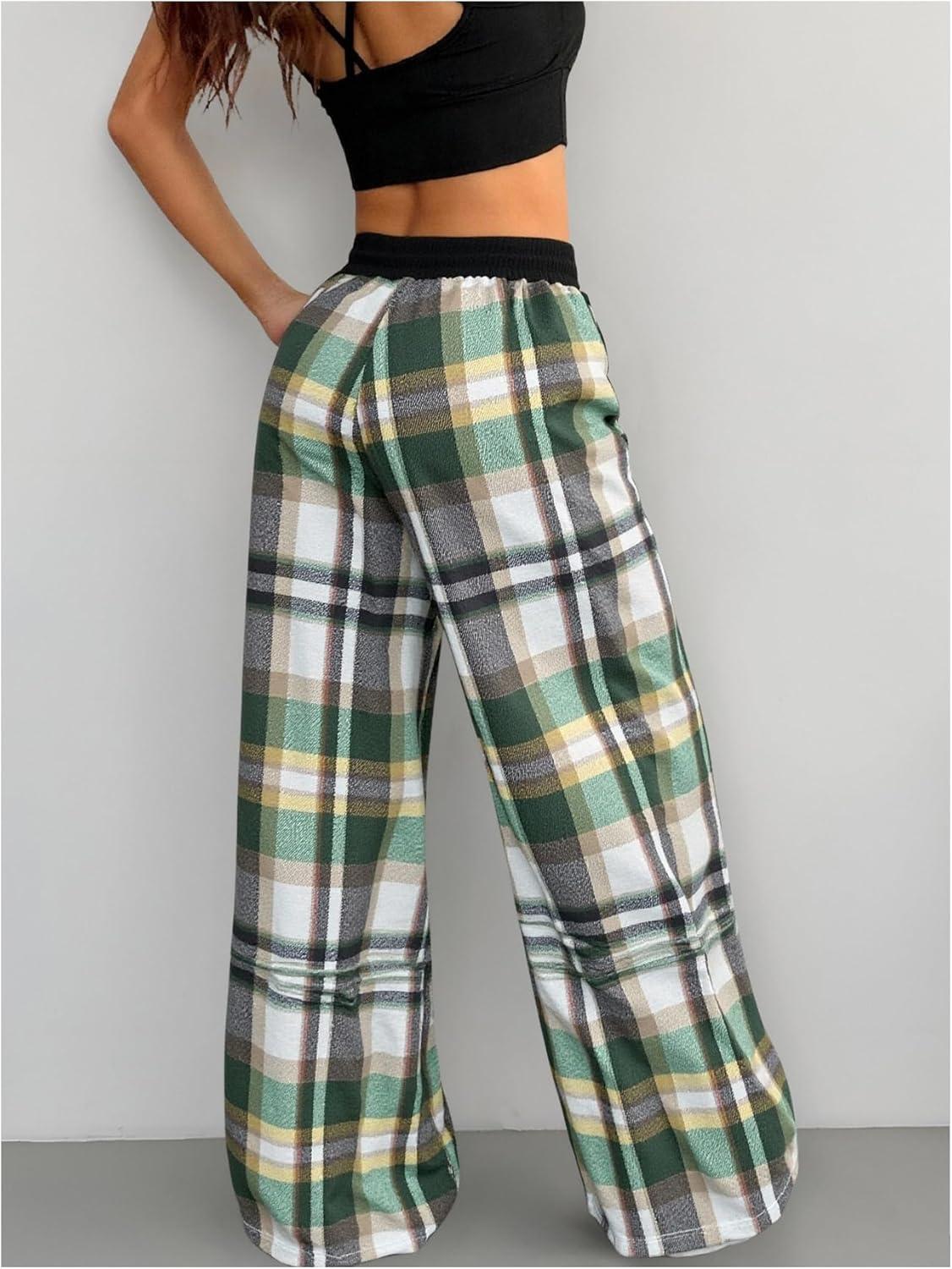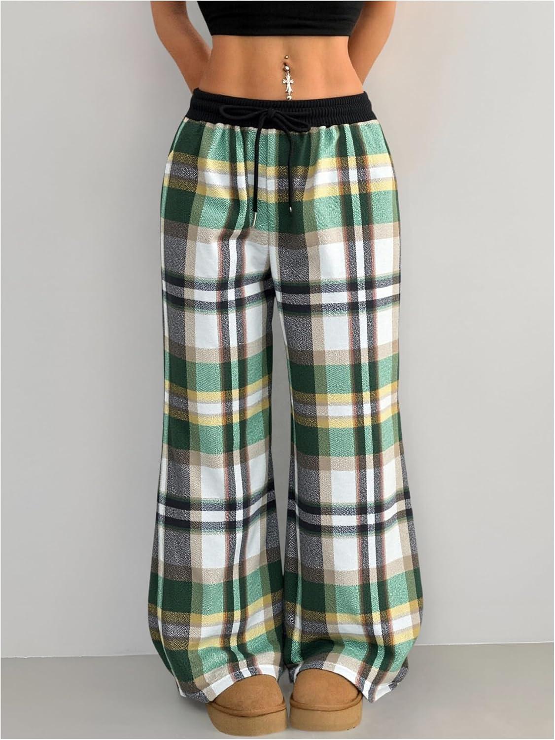 SOLY HUX Women’s Plaid Checkered Pants Flannel Pajama Pants Lounge Wide Leg Baggy Sweatpants with Pockets(Turquoise Plaid)