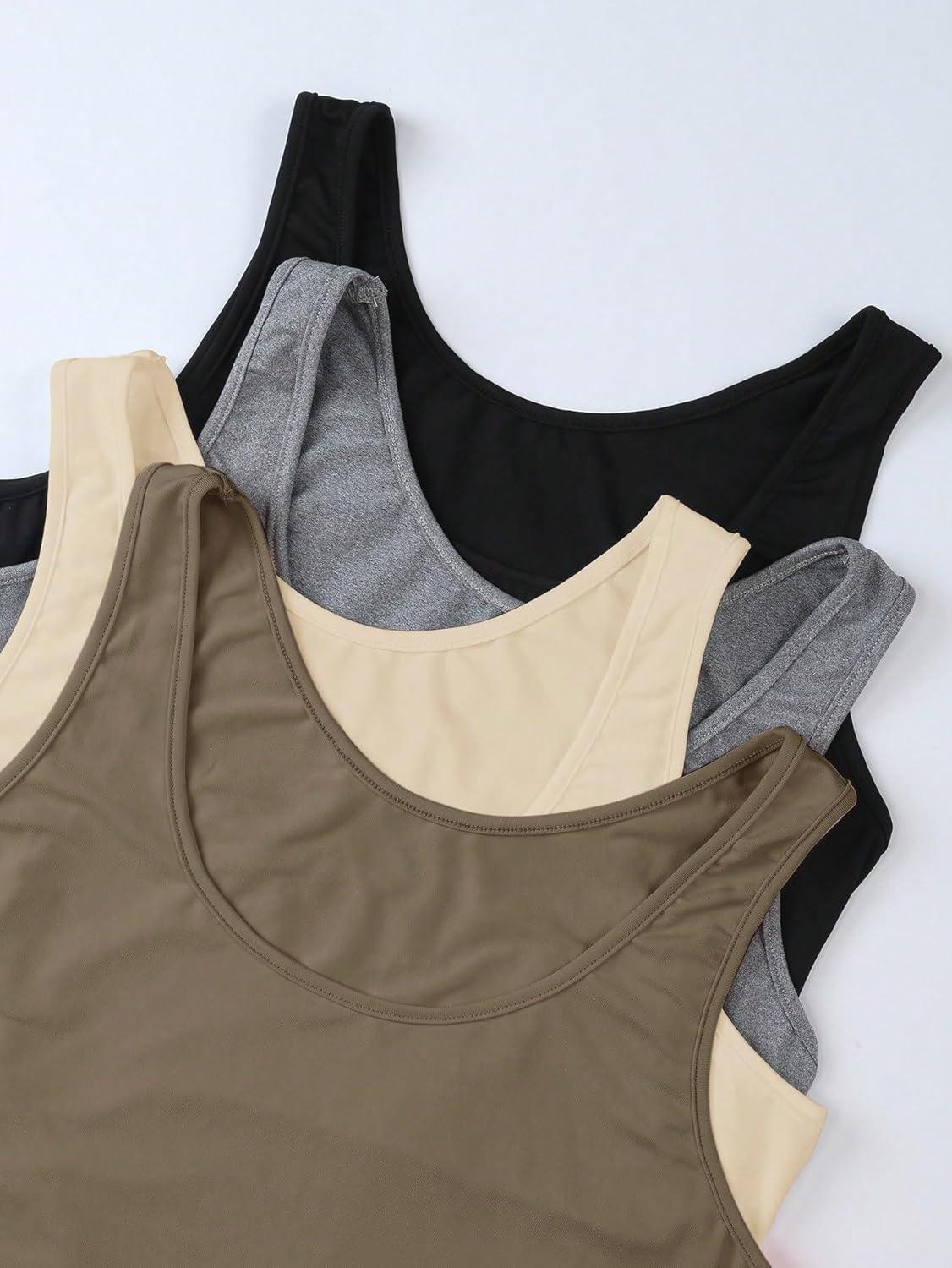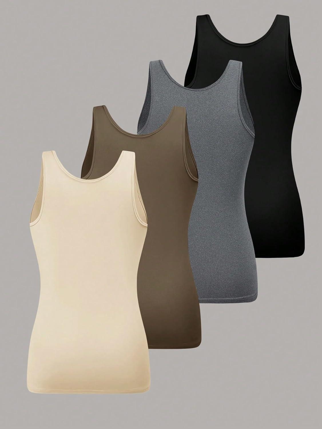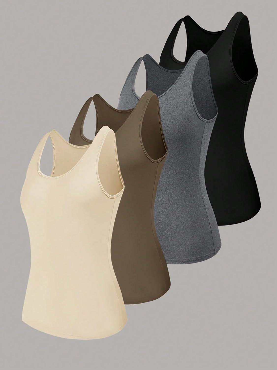 SOLY HUX Women’s Plus Size 4 Packs Long Tank Tops Sleeveless Undershirts Layering Basic Vests(Apricot Brown Grey Black)