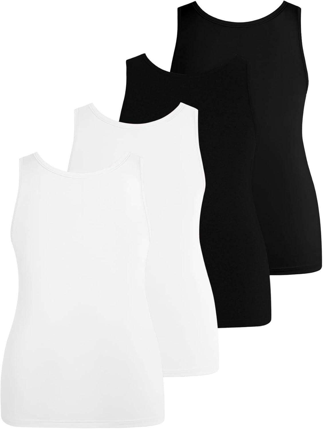 SOLY HUX Women’s Plus Size 4 Packs Long Tank Tops Sleeveless Undershirts Layering Basic Vests(Black White)