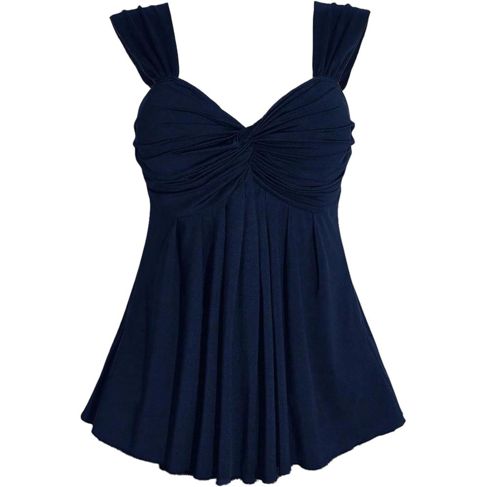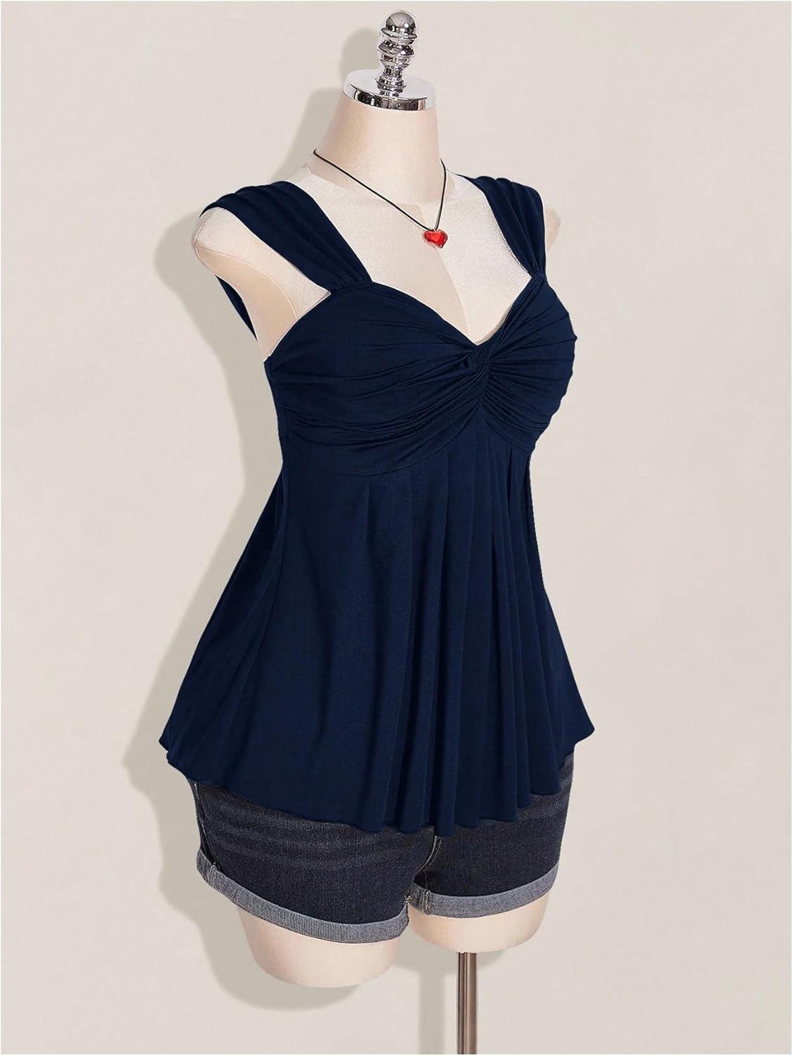 SOLY HUX Women’s Plus Size Babydoll Tops Twist Front Sleeveless Peplum Flowy Going Out Top(Solid Dark Blue)