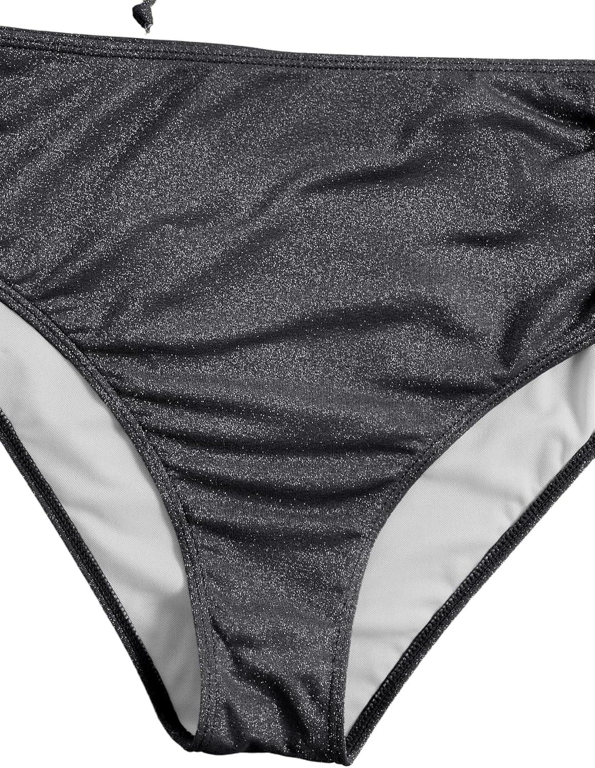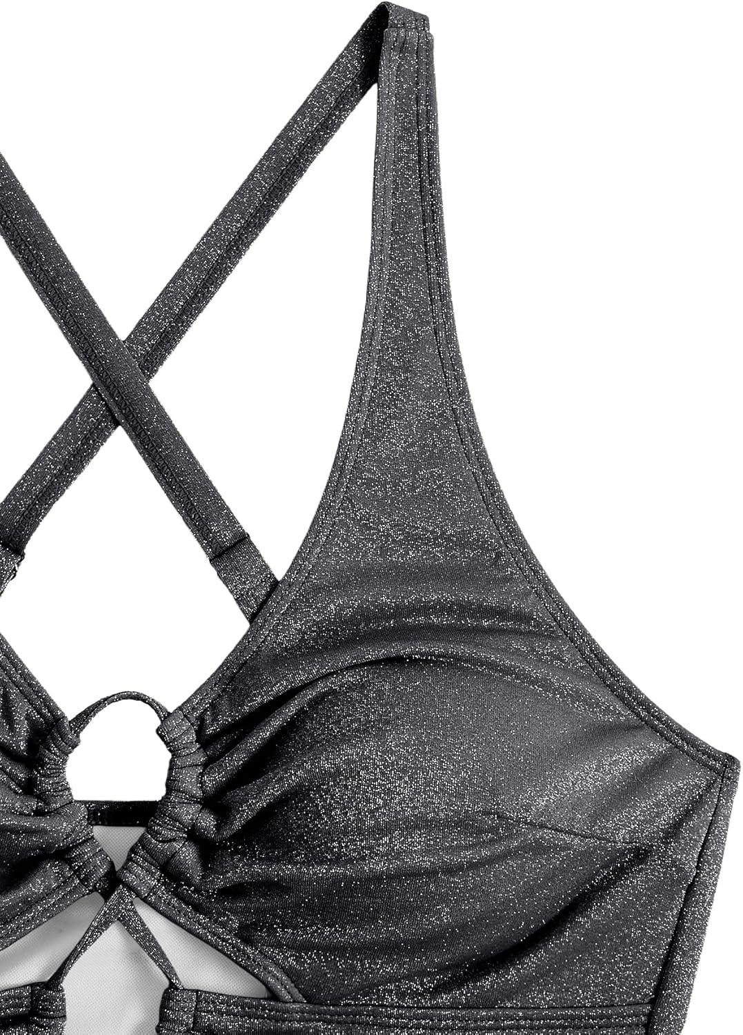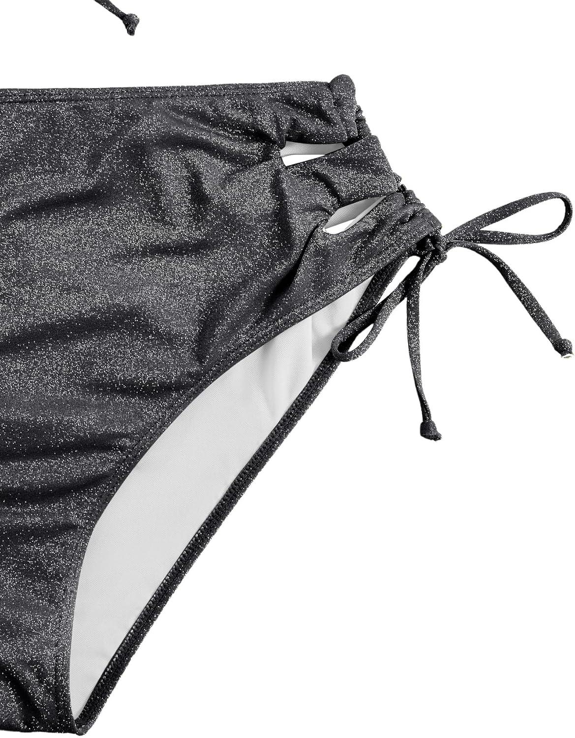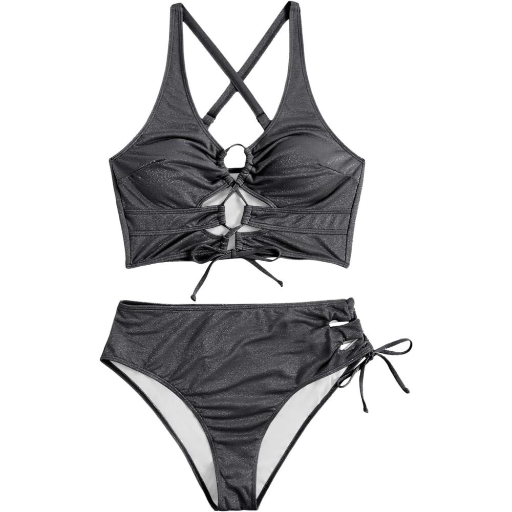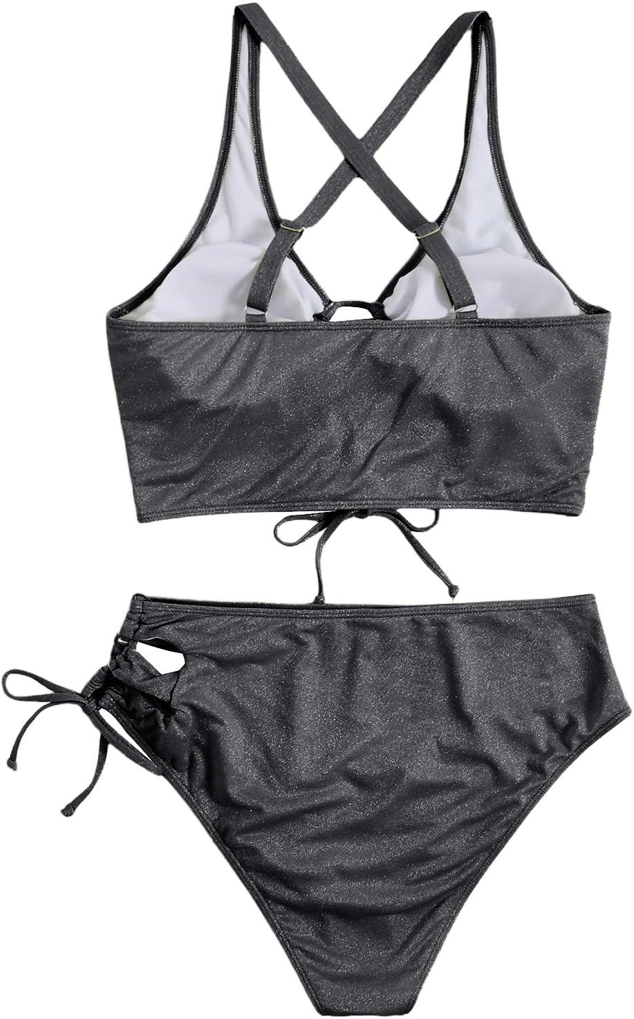 SOLY HUX Women’s Plus Size Bikini Set Sexy Swimsuit Lace Up Tummy Control 2 Piece Bathing Suit(Plain Silver)