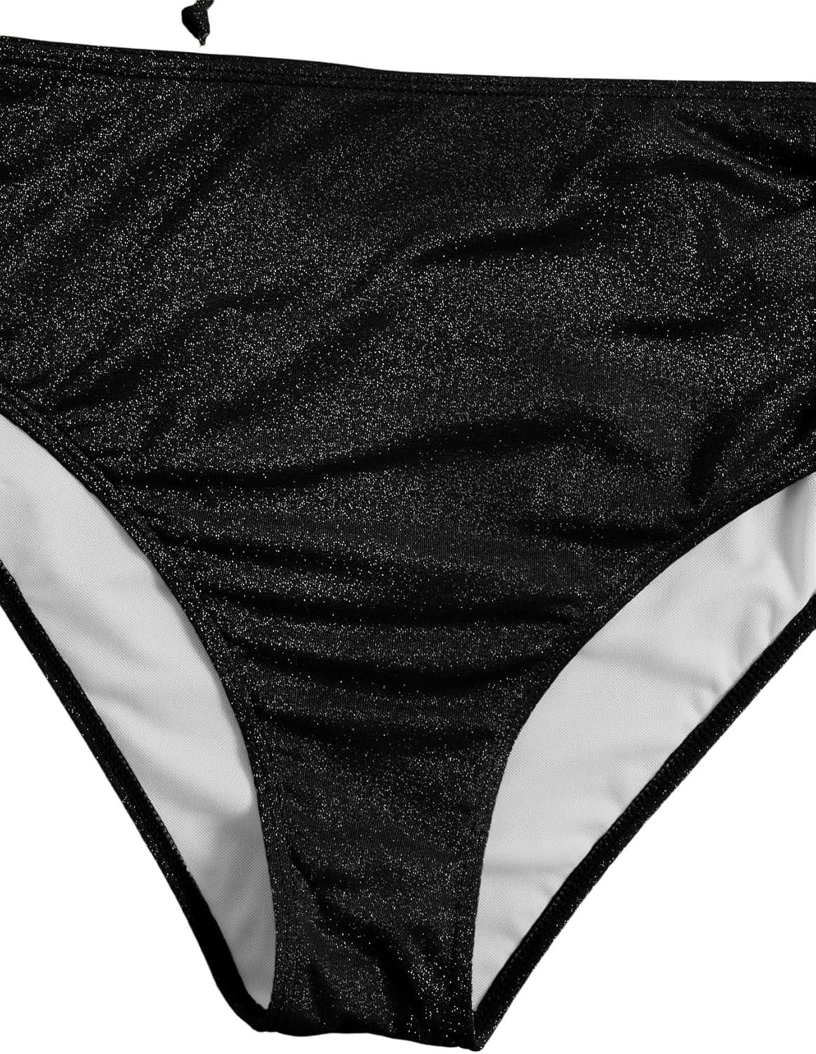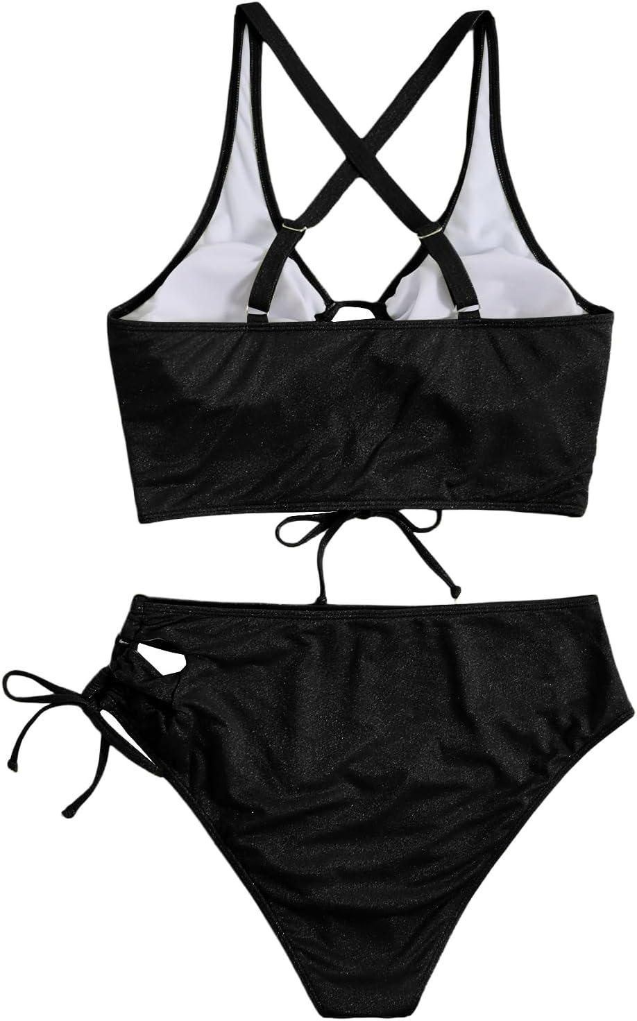 SOLY HUX Women’s Plus Size Bikini Set Sexy Swimsuit Lace Up Tummy Control 2 Piece Bathing Suit(Pure Black)