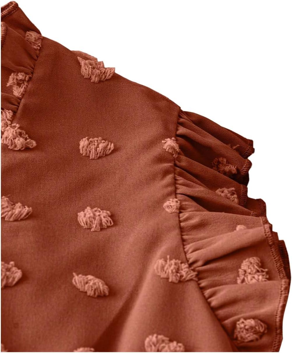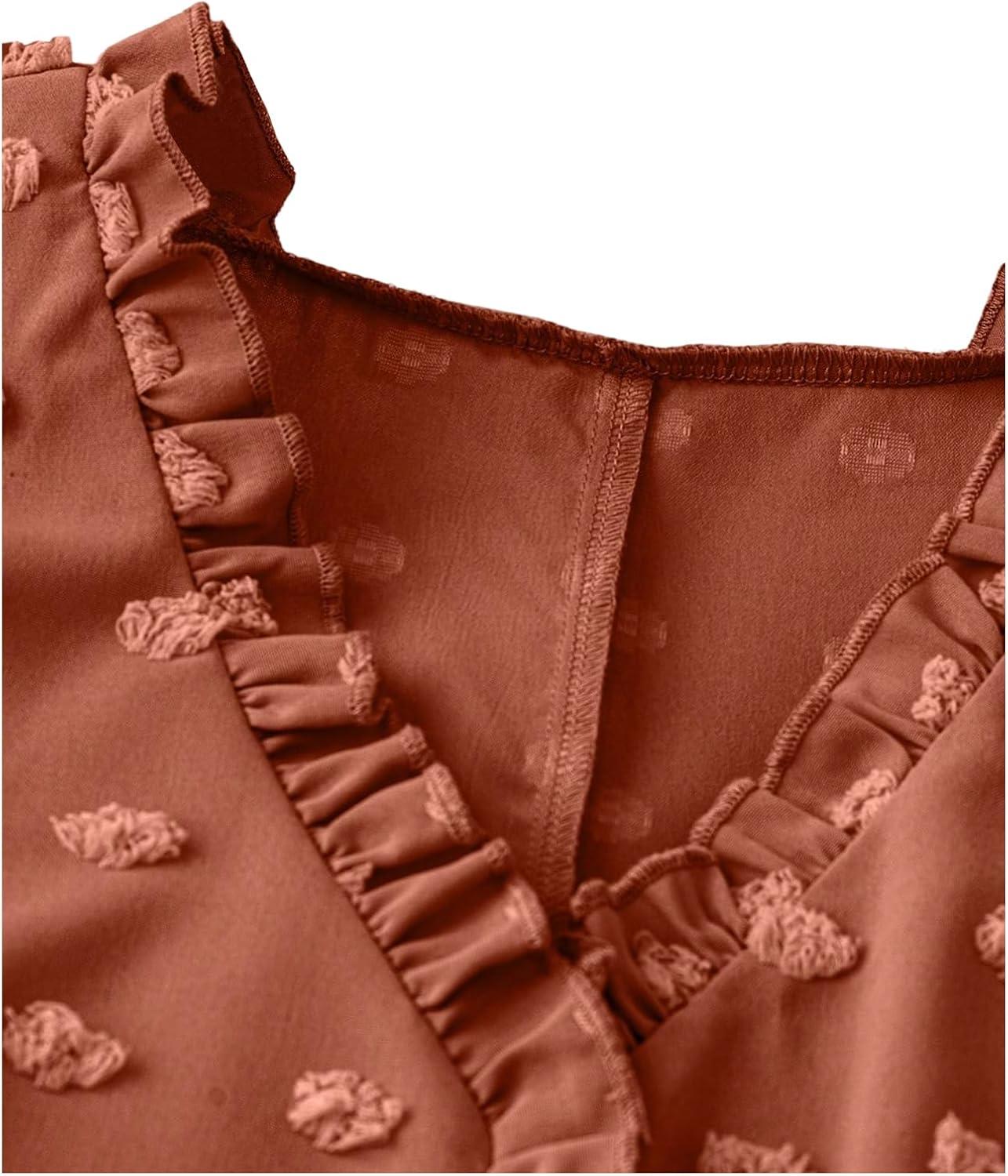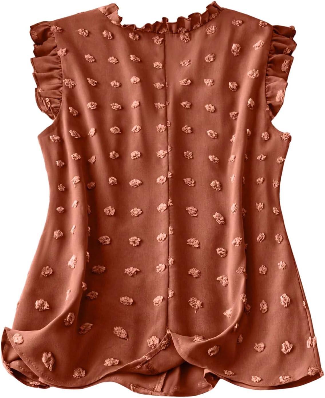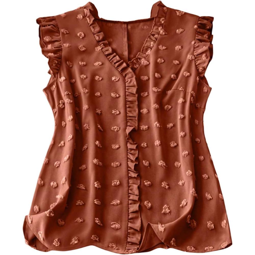 SOLY HUX Women’s Plus Size Blouse Swiss Dots V Neck Ruffle Sleeveless Vacation Casual Summer Tops(Plain Coffee Brown)