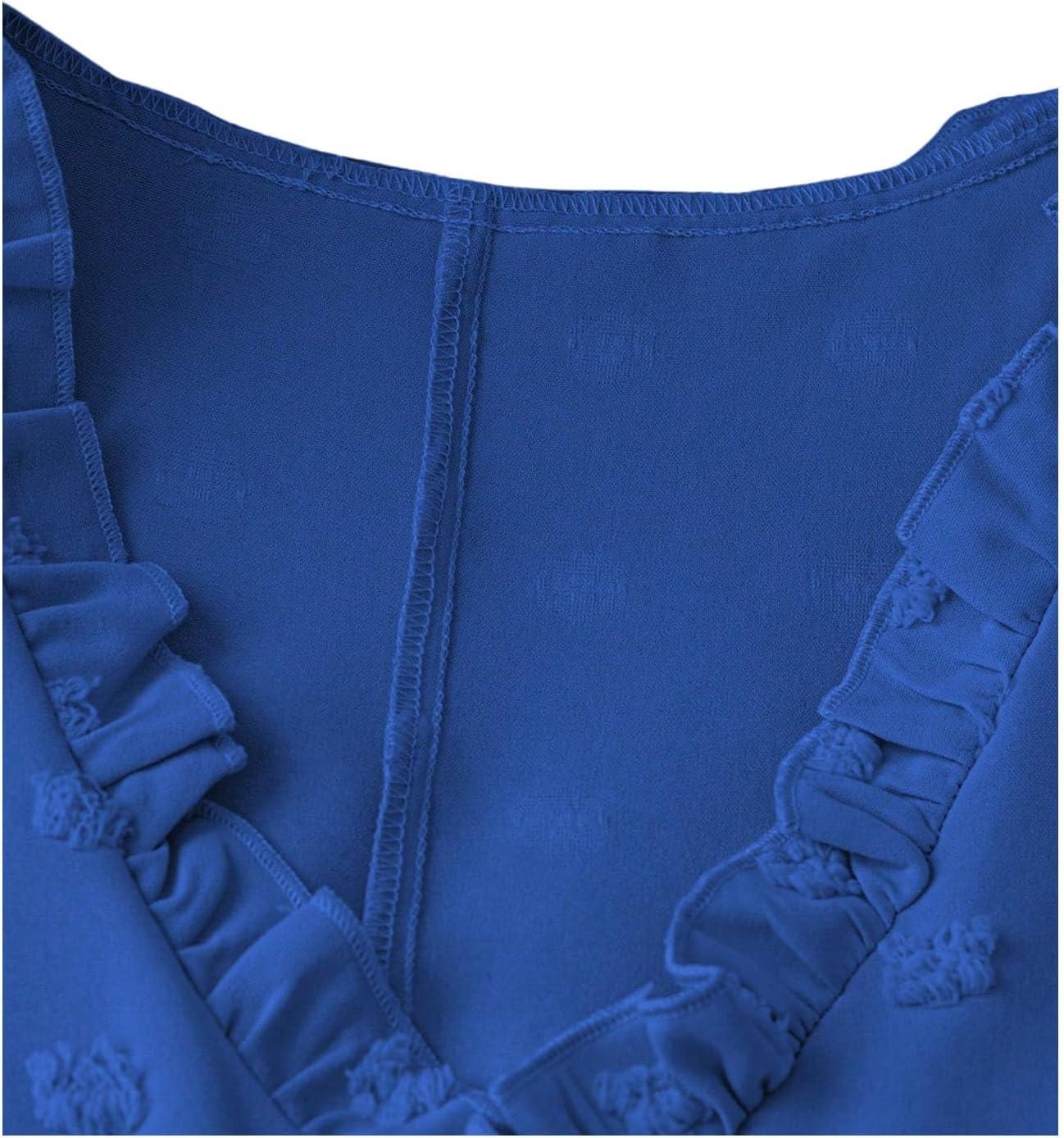 SOLY HUX Women’s Plus Size Blouse Swiss Dots V Neck Ruffle Sleeveless Vacation Casual Summer Tops(Plain Royal Blue)