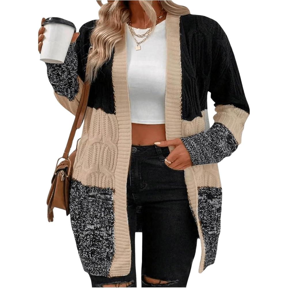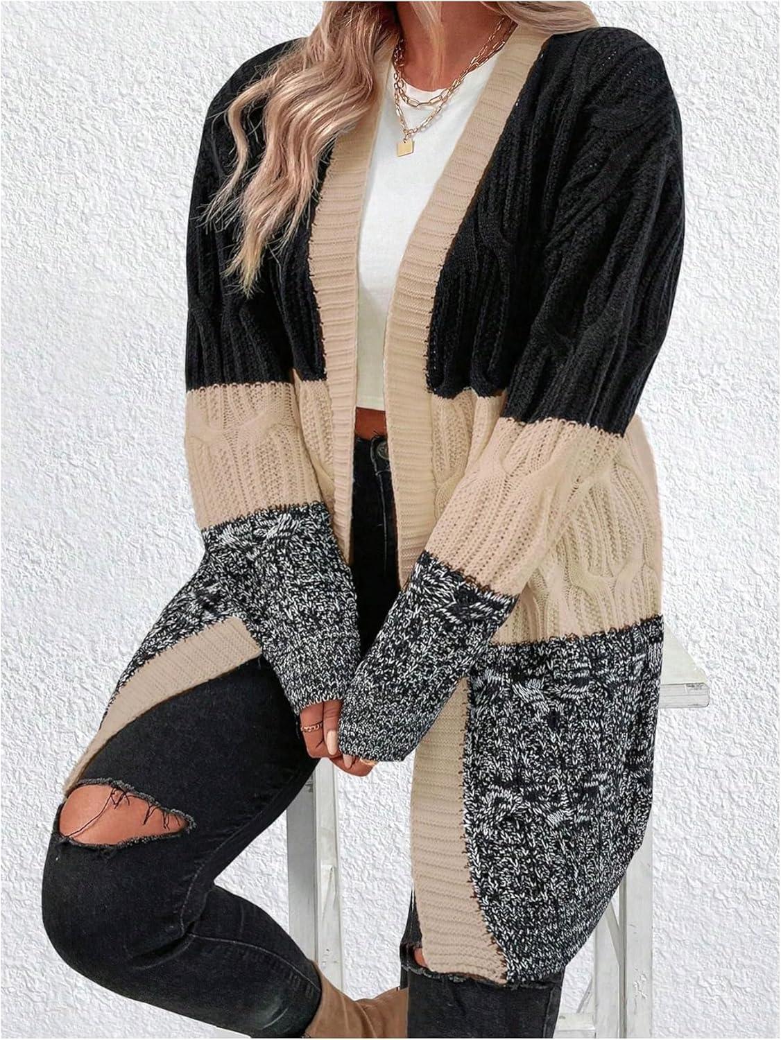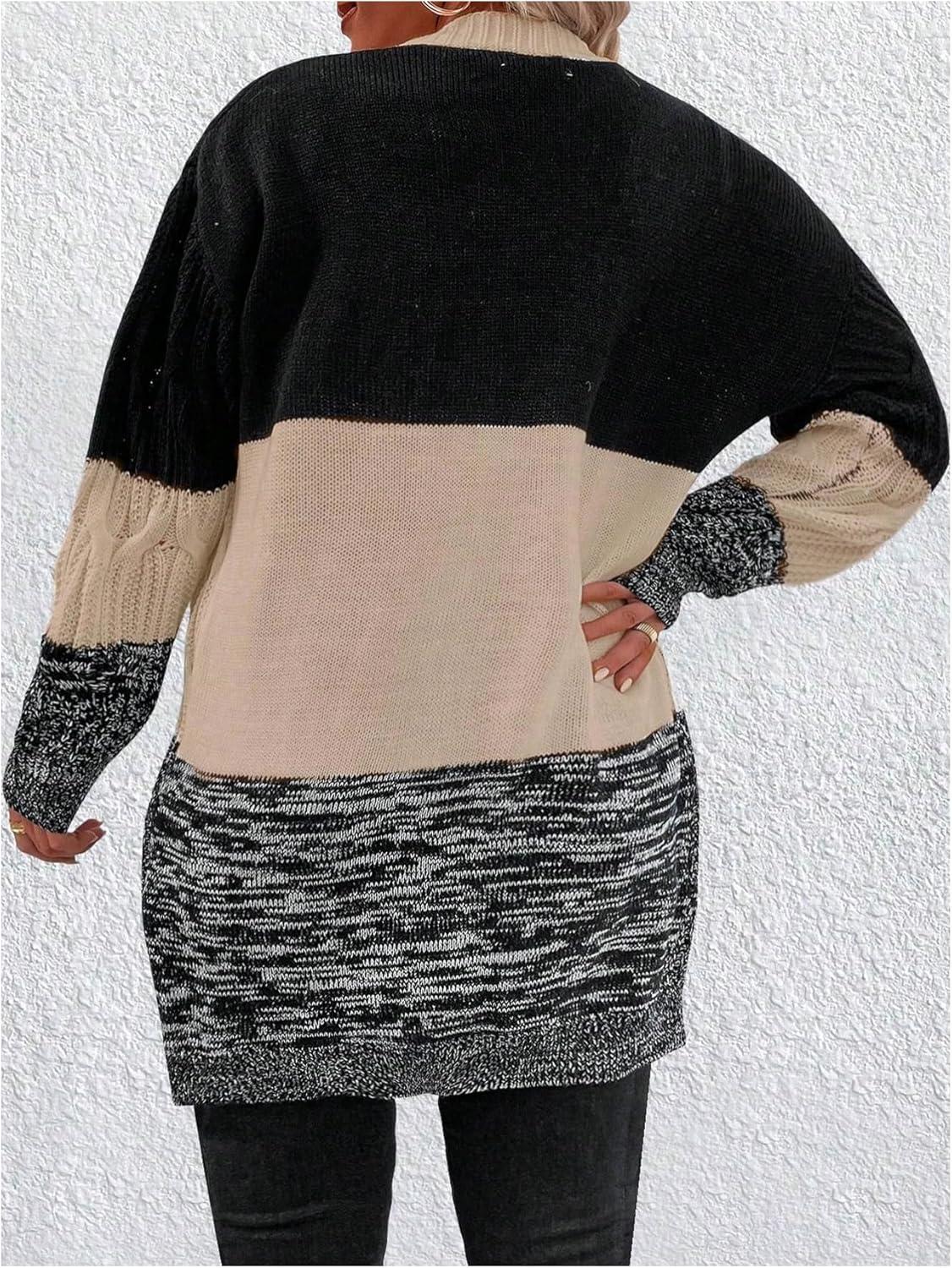 SOLY HUX Women’s Plus Size Color Block Cardigan Sweater Open Front Long Sleeve Casual Cardigans(Multicoloured Colorblock)