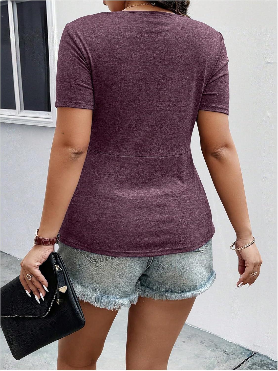 SOLY HUX Women’s Plus Size Deep V Neck Twist Front T Shirts Short Sleeve Summer Tunic Tops Ruffle Flowy Tees(Solid Purple)