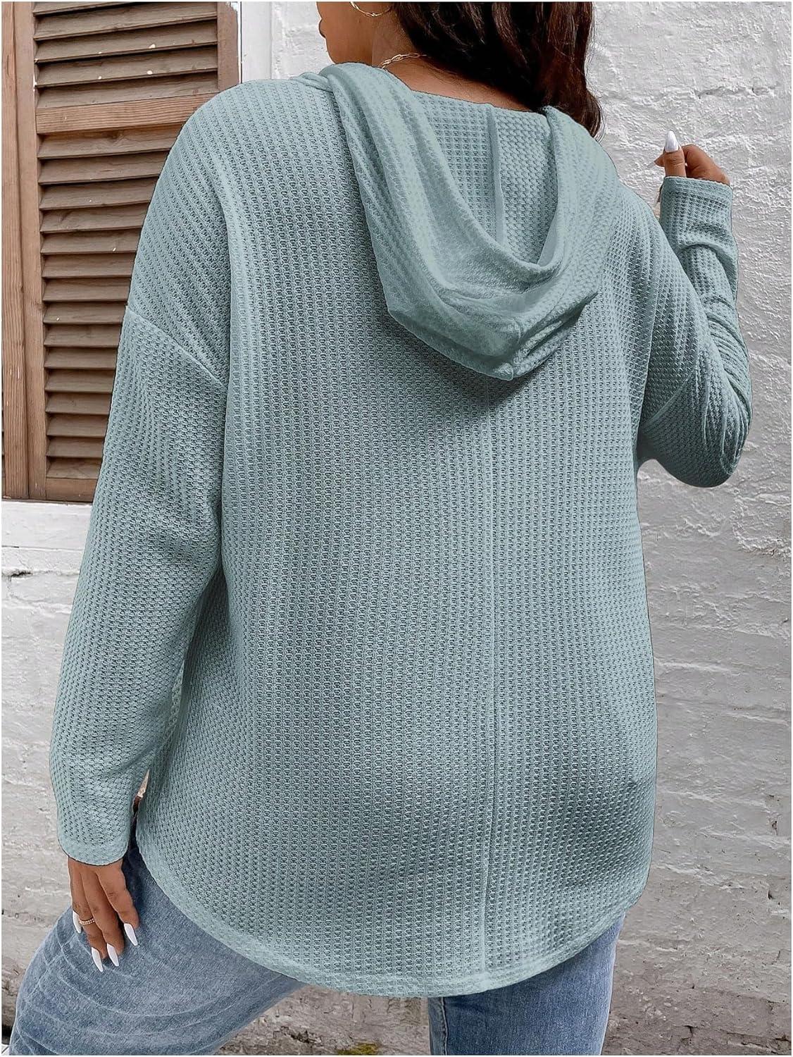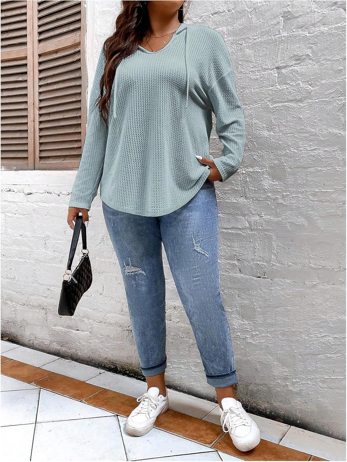 SOLY HUX Women’s Plus Size Drawstring Hoodie Dressy Casual Raglan Long Sleeve Knit Sweatshirts(Plain Dusty Blue)