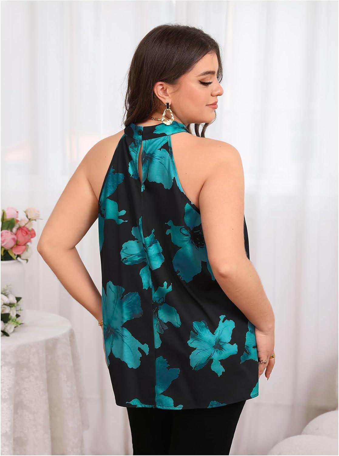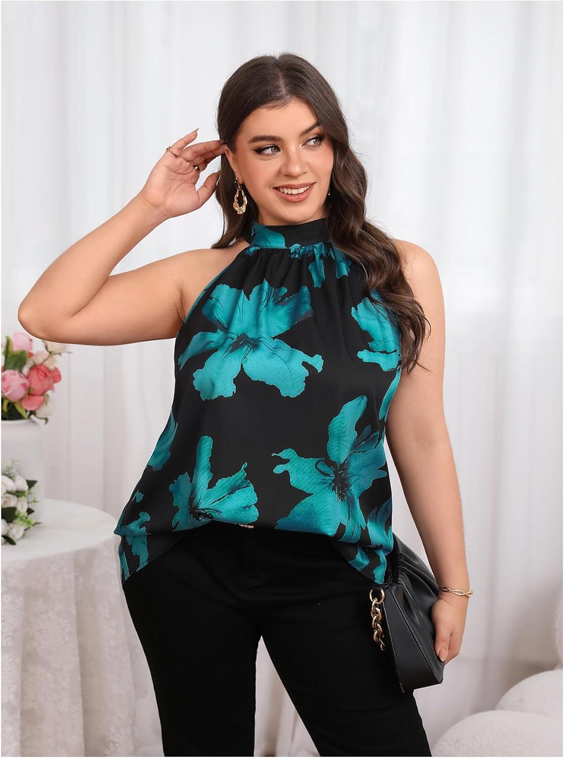 SOLY HUX Women’s Plus Size Floral Halter Tank Top Sleeveless Flowy Summer Going Out Shirts(Multicolor Printed)