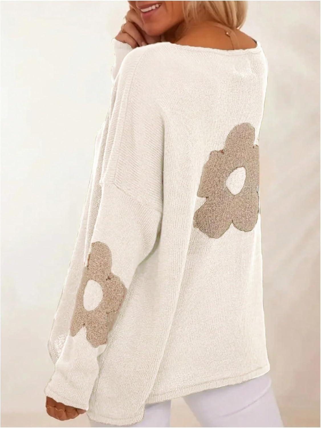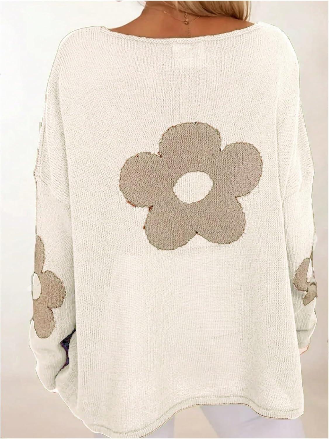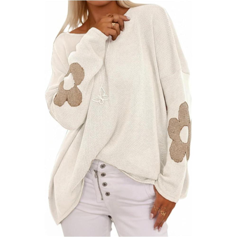 SOLY HUX Women’s Plus Size Floral Sweater Long Sleeve Oversized Fall Knit Pullover Tops(White Floral)