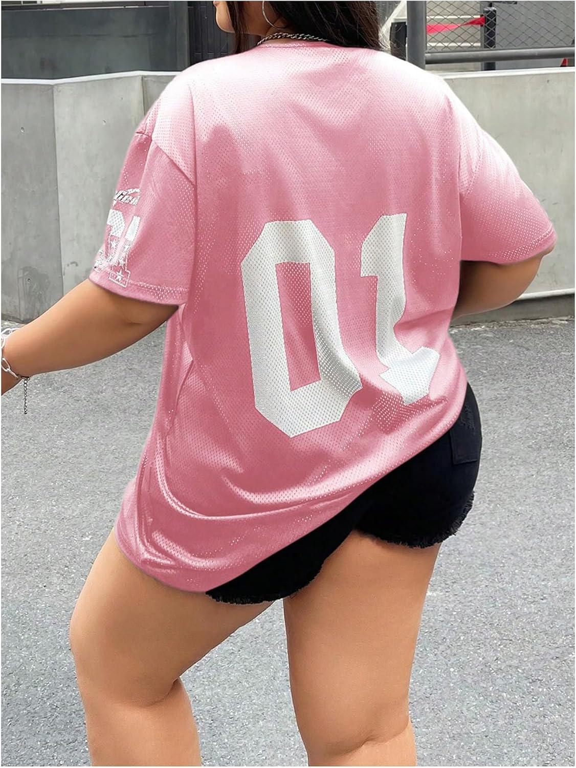 SOLY HUX Women’s Plus Size Jersey Lace Up V Neck Short Sleeve T Shirts Number Graphic Tee Tops Streetwear(Pink Graphic)