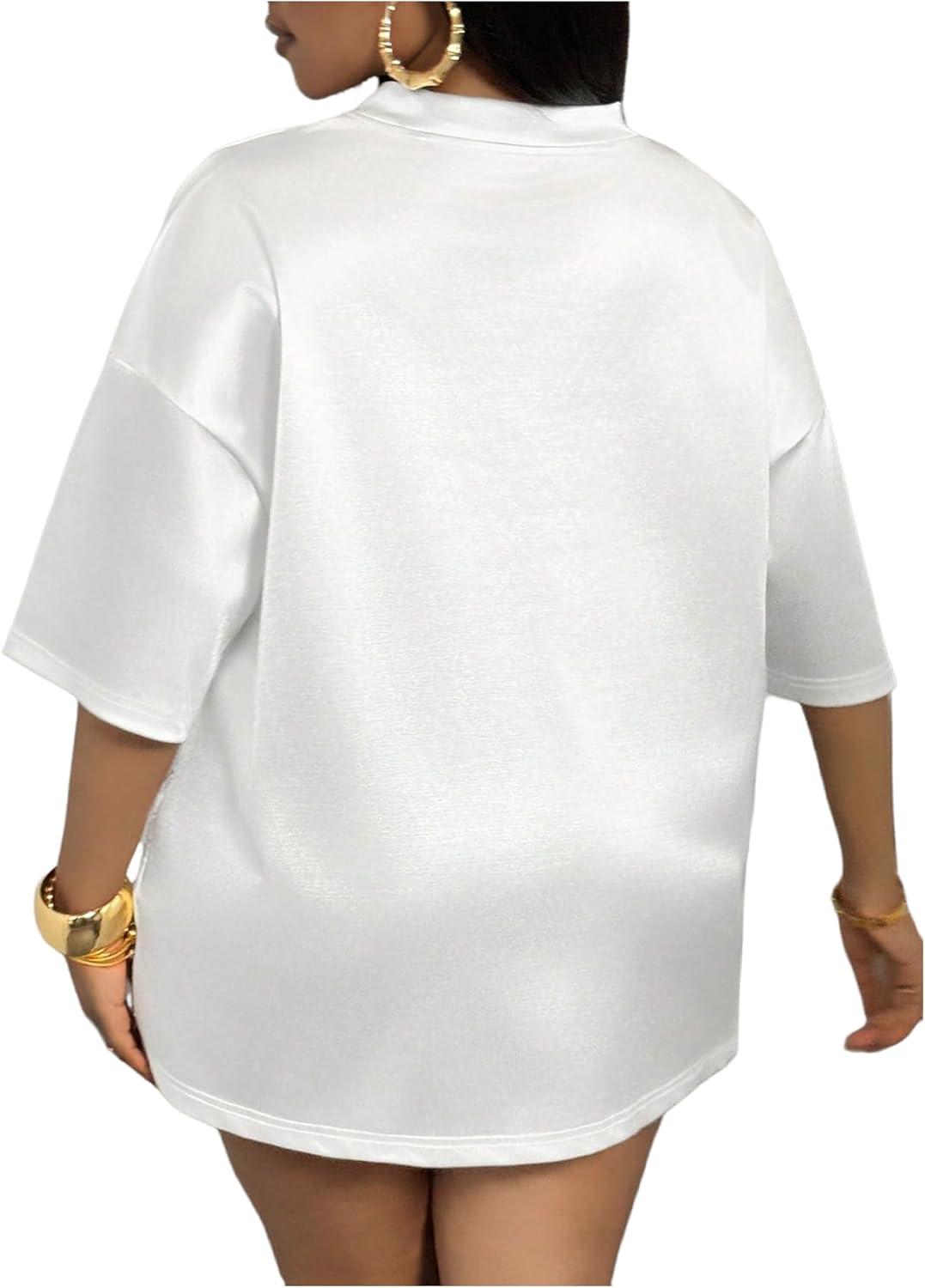 SOLY HUX Women’s Plus Size Jersey Shirts Sheer Lace Tops Y2K Streetwear Number Graphic Tees V Neck Summer Tops(White Letter)