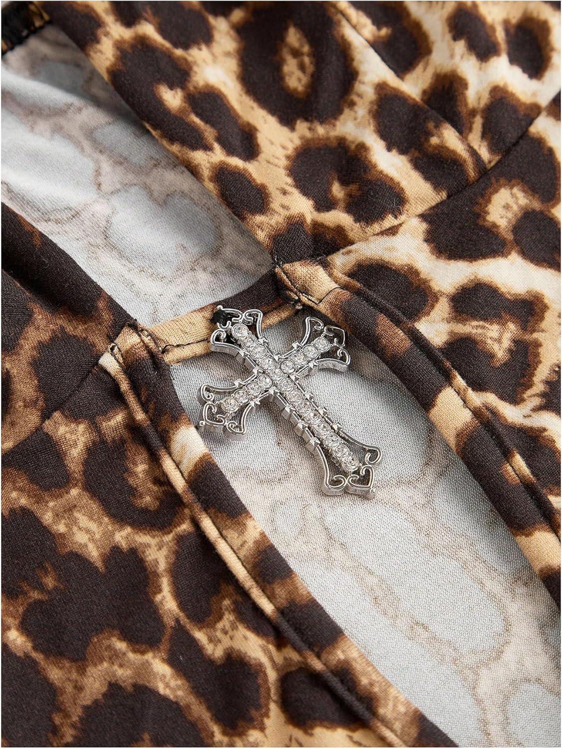 Be the first to review “SOLY HUX Women’s Plus Size Leopard Print Halter Dress Y2k Gothic Deep V Cheetah Tie Backless Layered Ruffle Mini Dresses(Brown Leopard)”