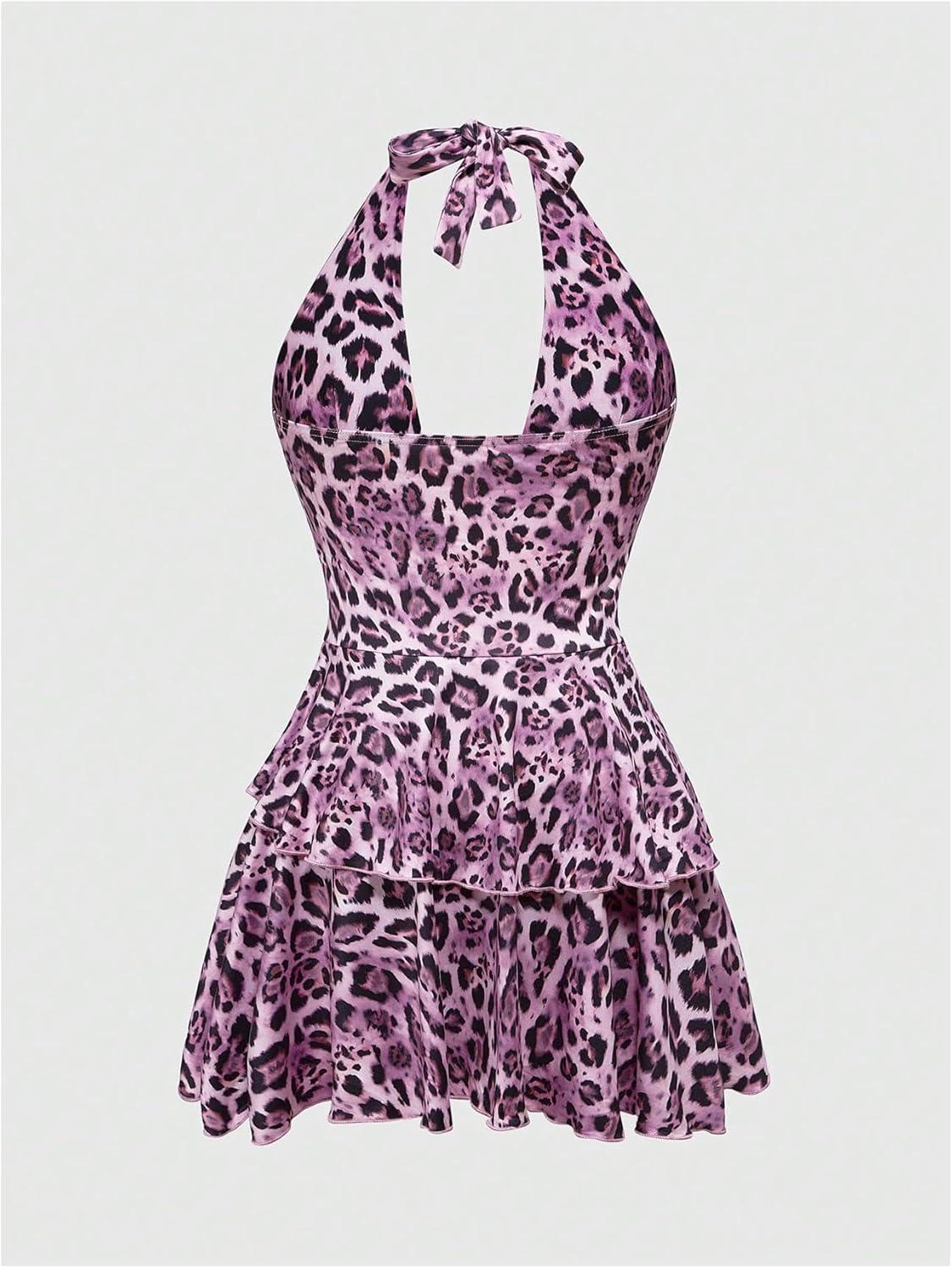 imageSOLY HUX Womens Plus Size Leopard Print Halter Dress Y2k Gothic Deep V Cheetah Tie Backless Layered Ruffle Mini DressesPurple Leopard