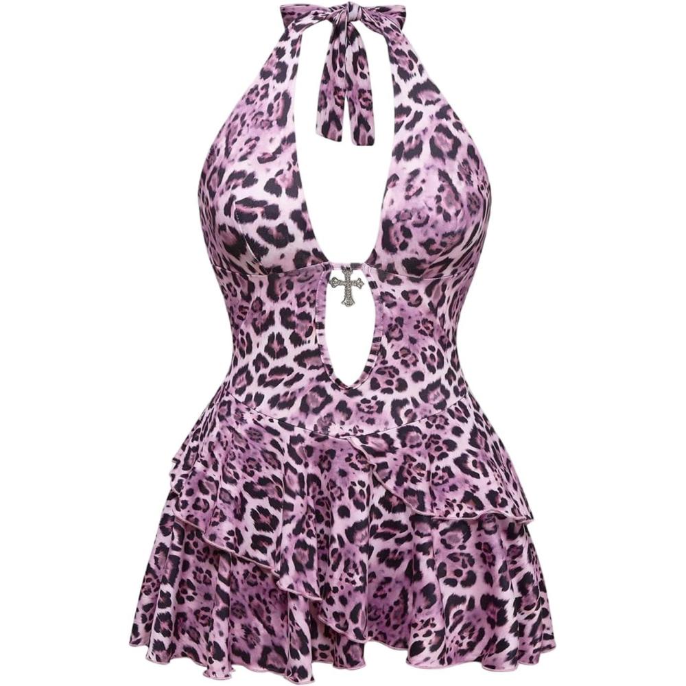 Be the first to review “SOLY HUX Women’s Plus Size Leopard Print Halter Dress Y2k Gothic Deep V Cheetah Tie Backless Layered Ruffle Mini Dresses(Pink Leopard)”