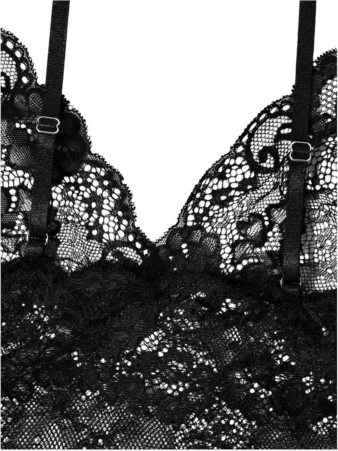 imageSOLY HUX Womens Plus Size Lingerie Set Spaghetti Strap Lace Trim Bralette and Shorts Sleepwear Pajama SetBlack Leopard Print