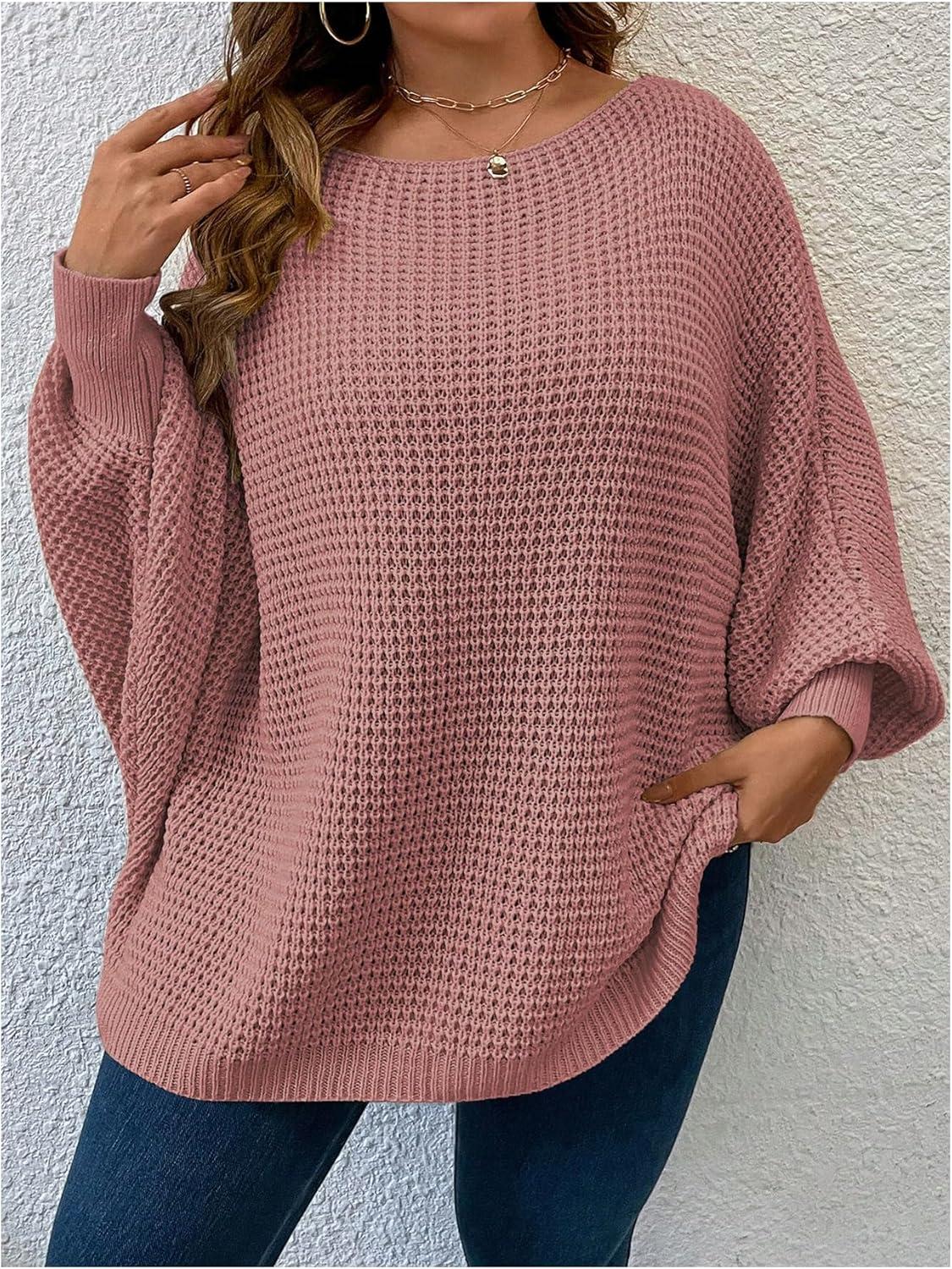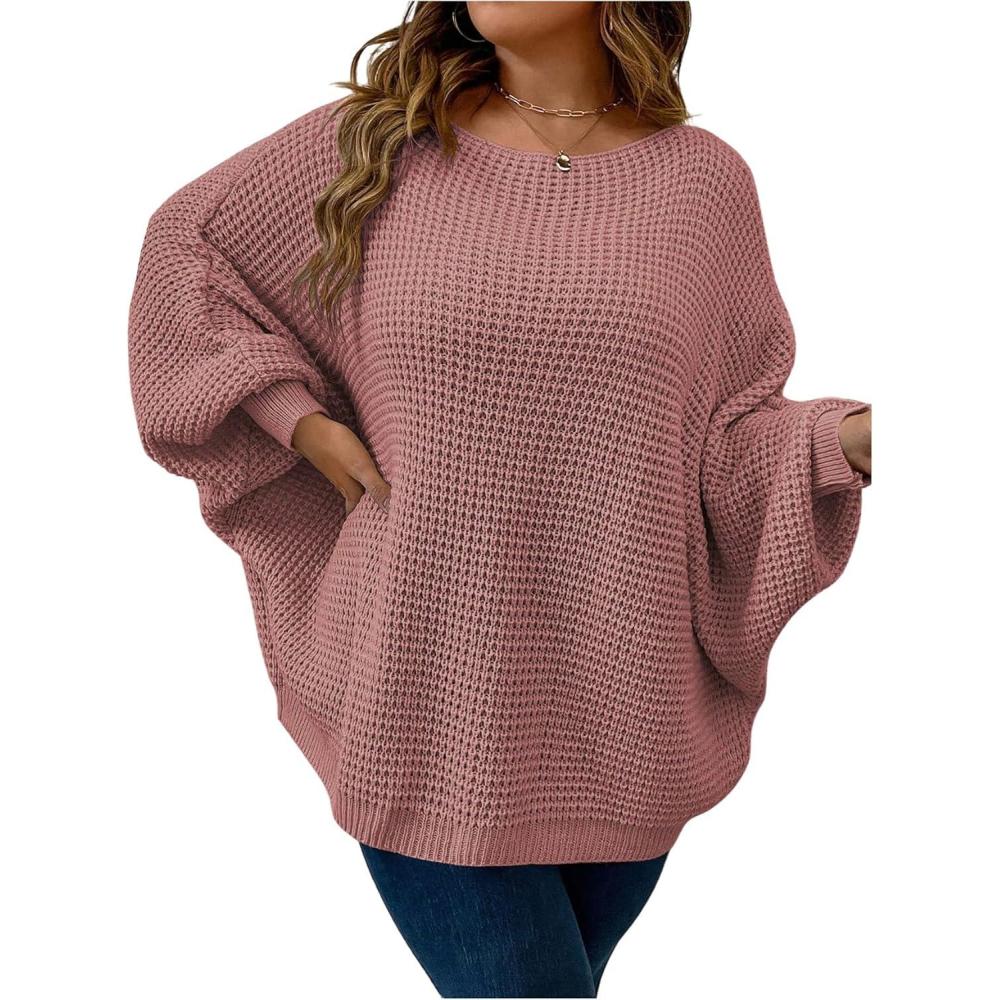 SOLY HUX Women’s Plus Size Oversized Sweater Fall Fashion Crewneck Long Sleeve Casual Pullover Tops(Pure Dusty Pink)