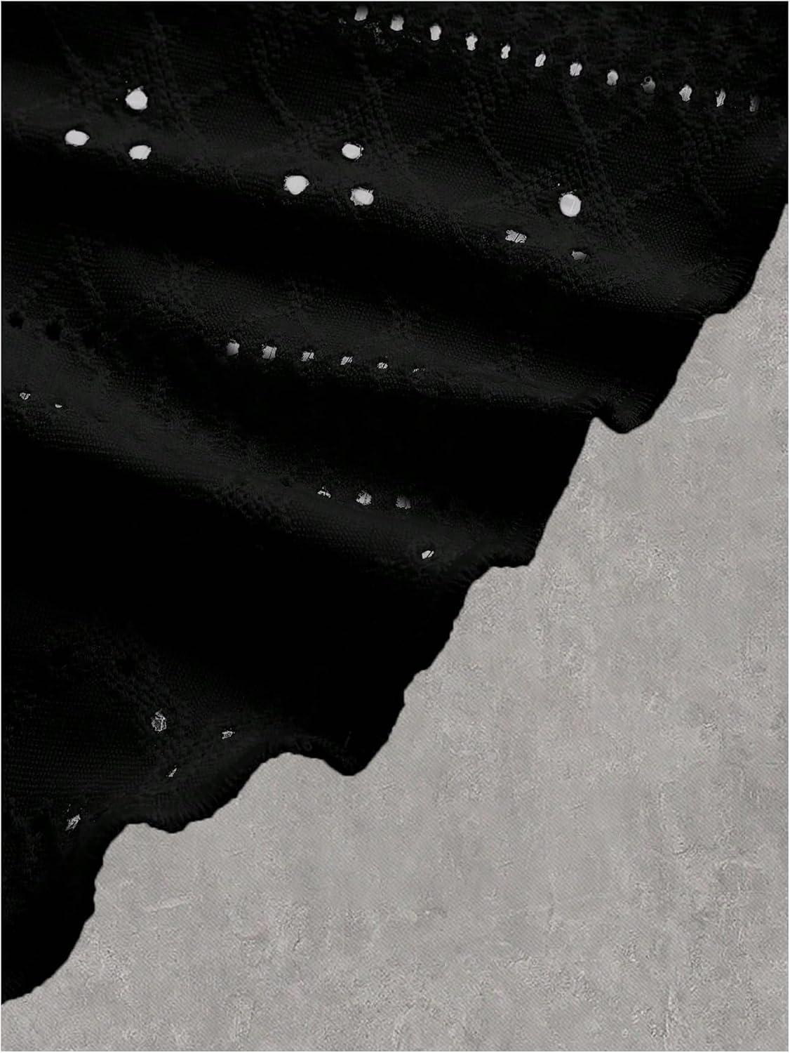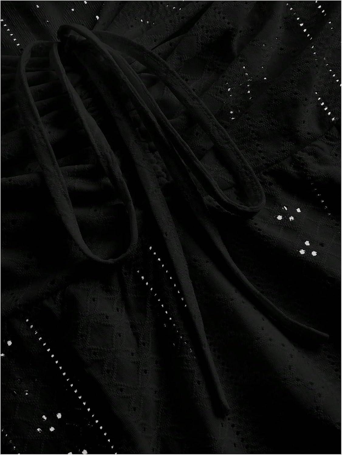 SOLY HUX Women’s Plus Size Peplum Tops Cute Sweetheart Neck Tie Front Eyelet Cami Babydoll Top(Pure Black)