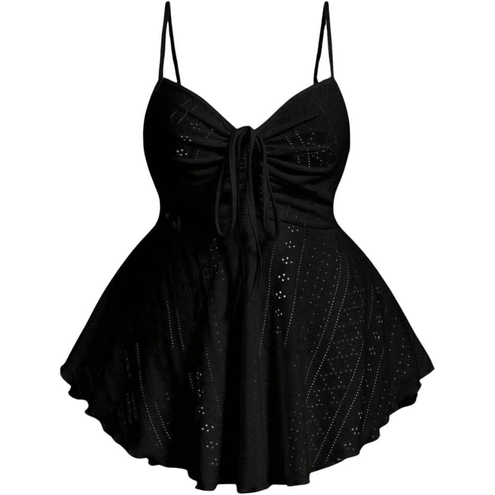 Be the first to review “SOLY HUX Women’s Plus Size Peplum Tops Cute Sweetheart Neck Tie Front Eyelet Cami Babydoll Top(Pure Black)”