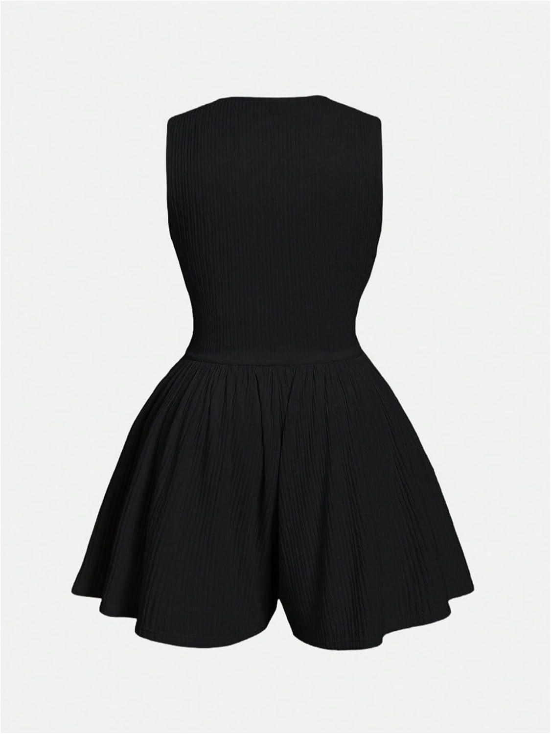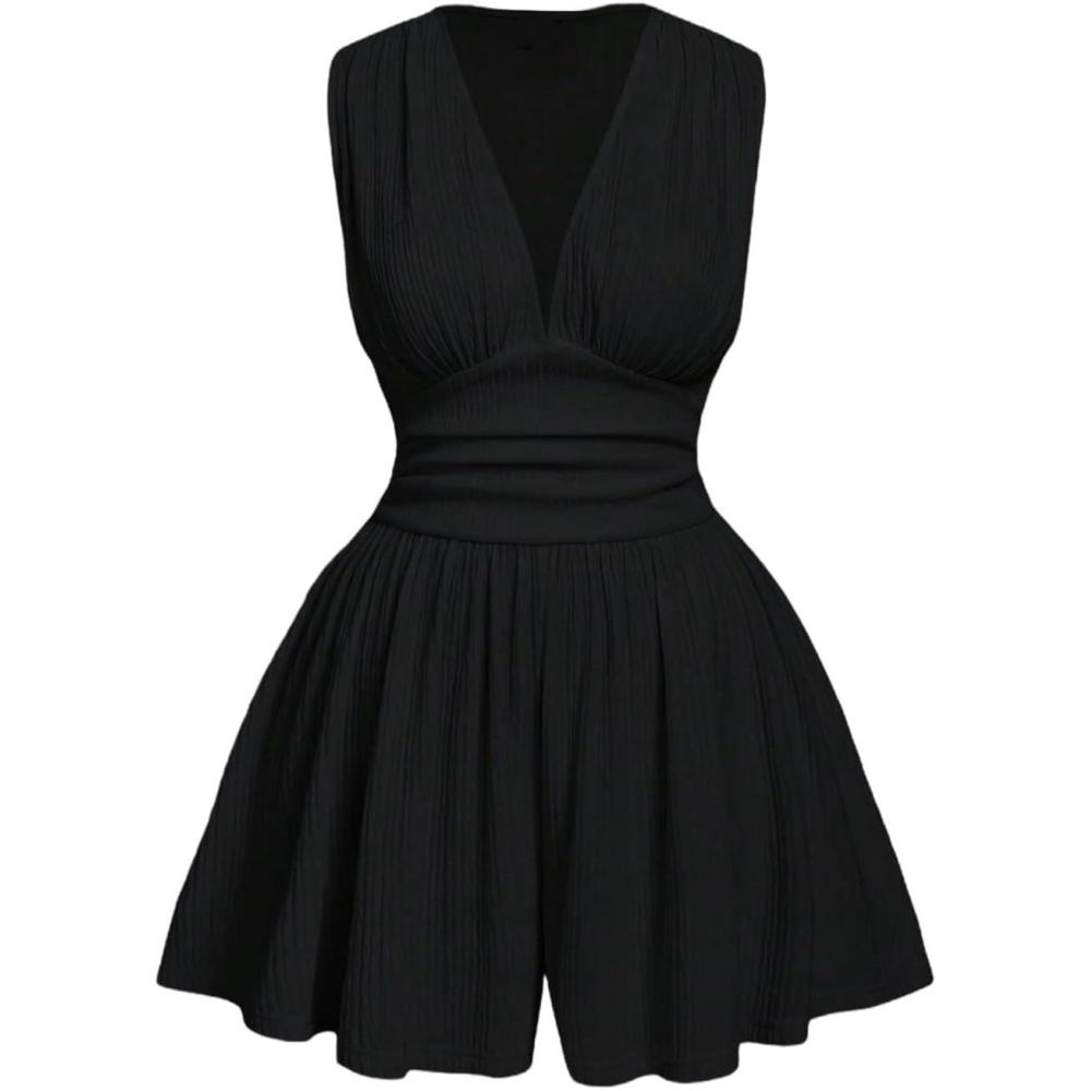 SOLY HUX Women’s Plus Size Ruched Deep V Neck Romper Summer Sleeveless Wide leg Short Jumpsuits(Plain Black)