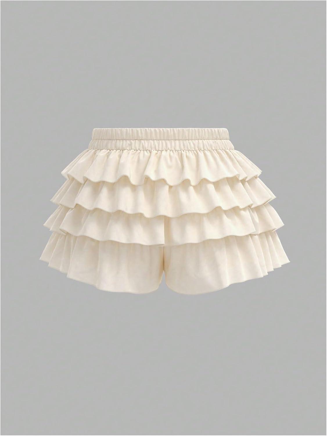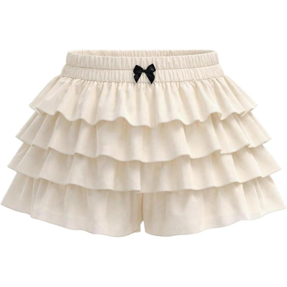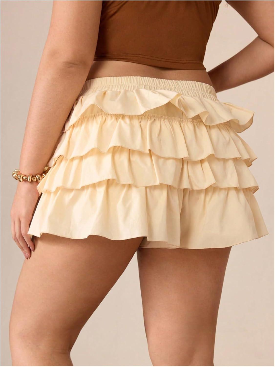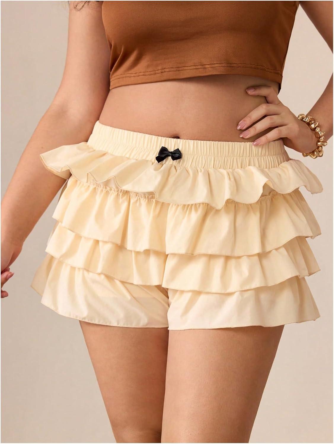 SOLY HUX Women’s Plus Size Ruffle Bloomers Shorts Y2k Leopard Layered Lolita Pumpkin Bottoms Mini Shorts(Plain Khaki)