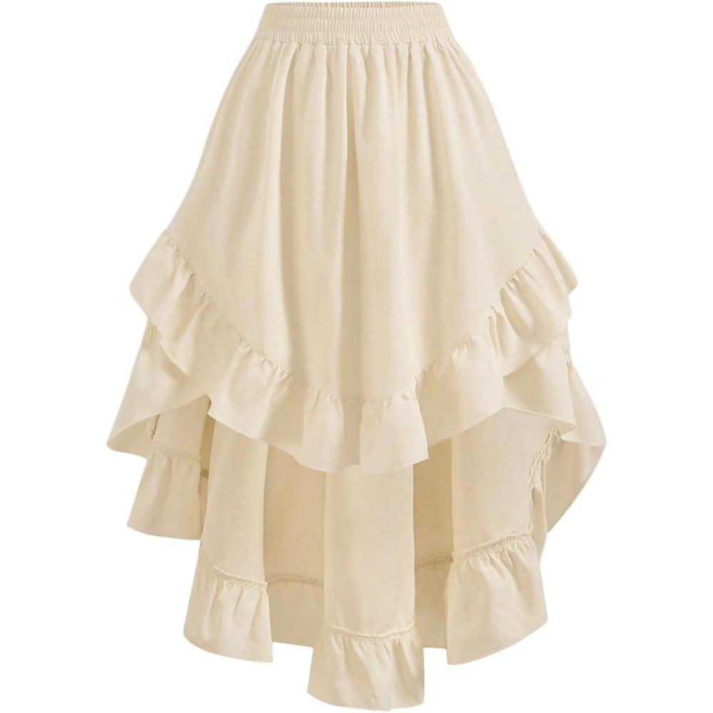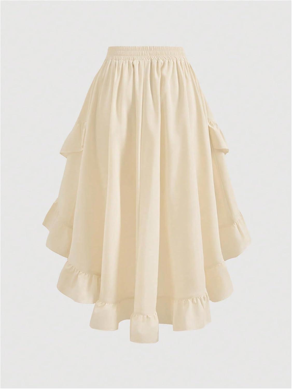 SOLY HUX Women’s Plus Size Ruffle Midi Skirt Elastic Waist High Low Asymmetrical Hem Summer Skirts(Plain Apricot)