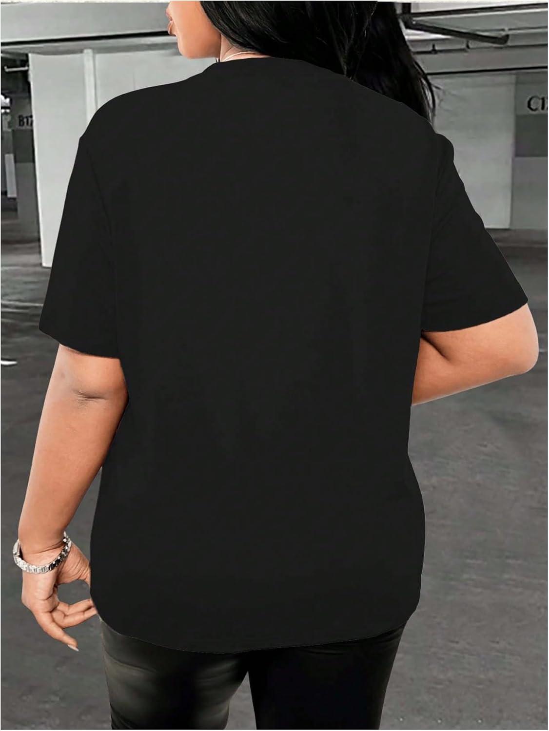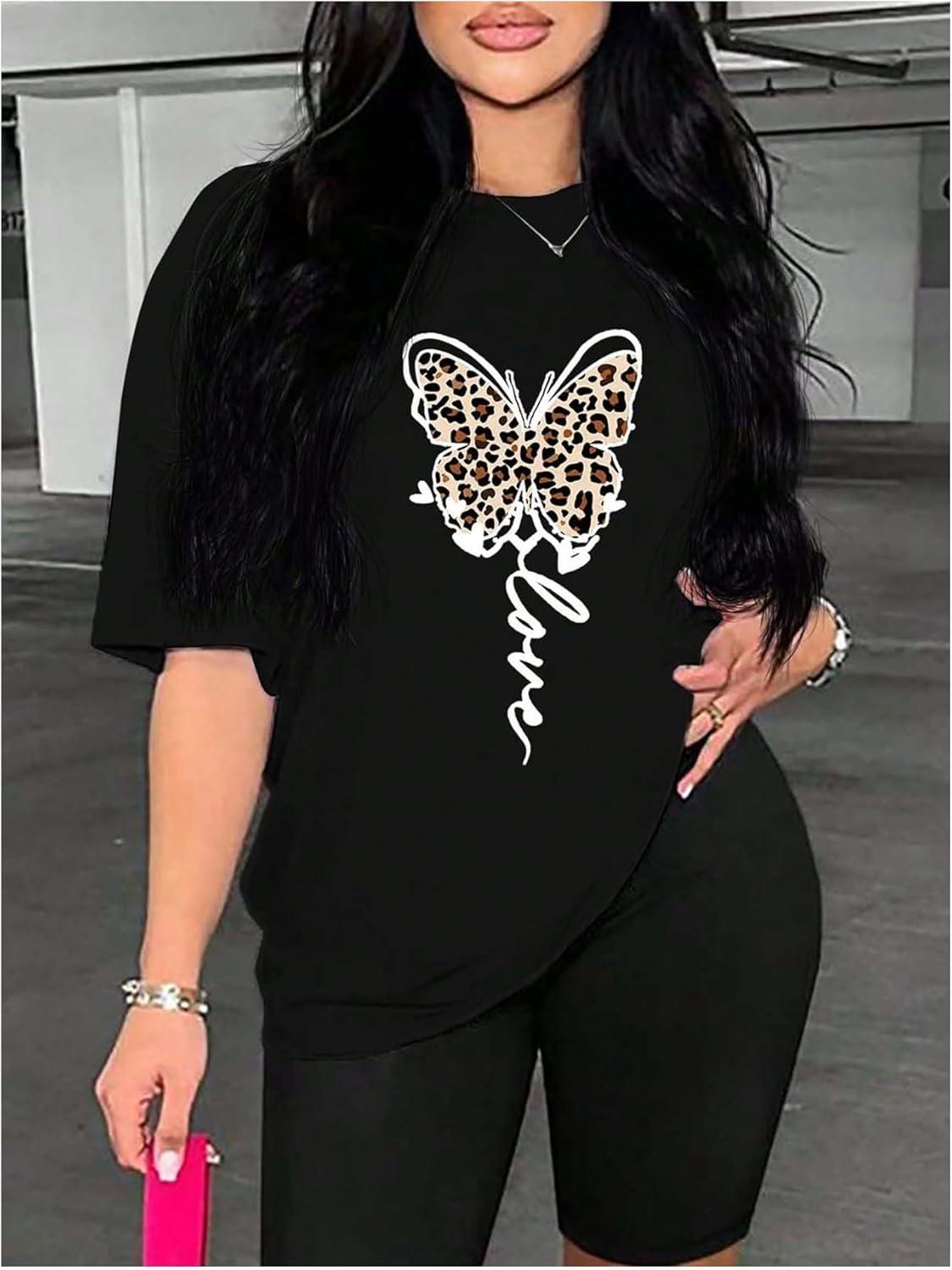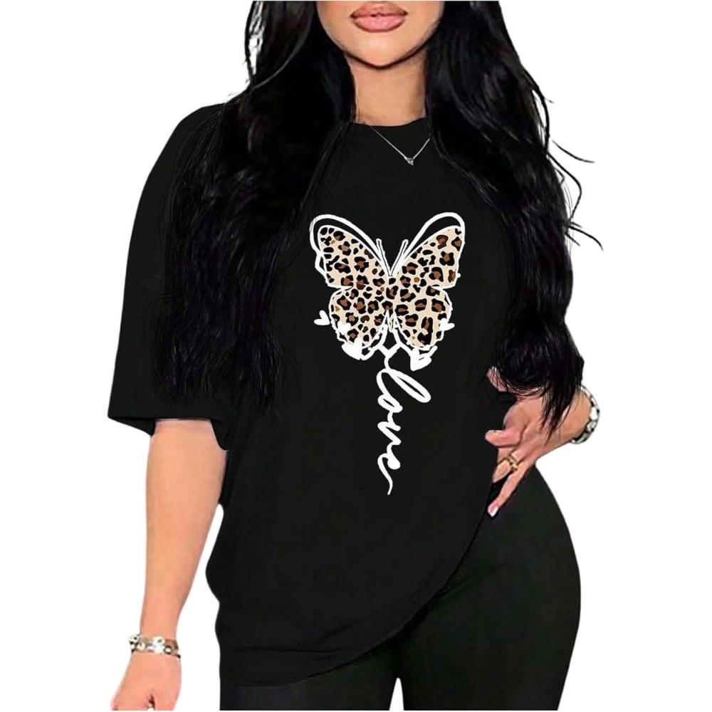 SOLY HUX Women’s Plus Size Summer Tops Short Sleeve Leopard Graphic Tees Crew Neck T-Shirts(Black Butterfly)