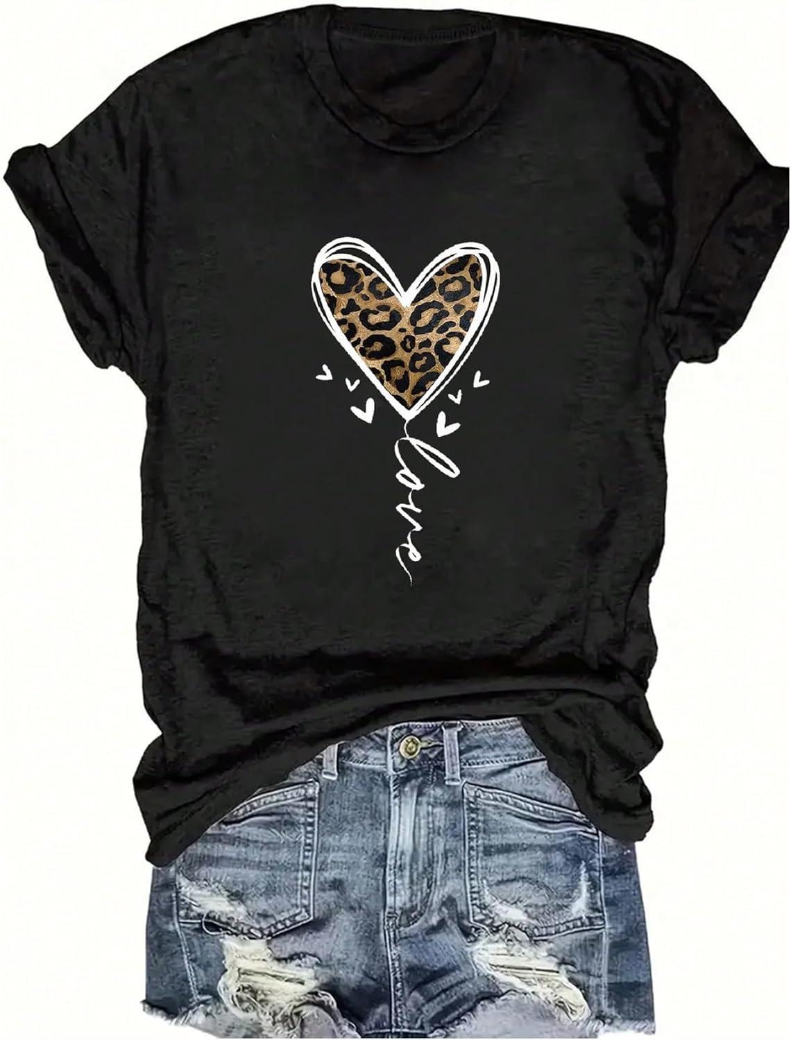 SOLY HUX Women’s Plus Size Summer Tops Short Sleeve Leopard Graphic Tees Crew Neck T-Shirts(Black Leopard)