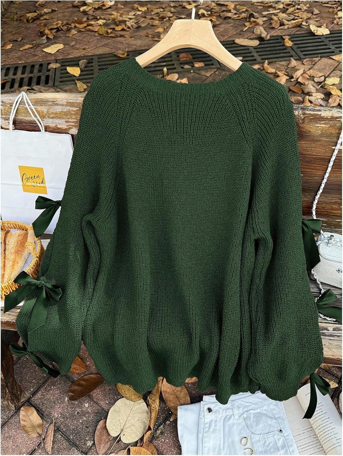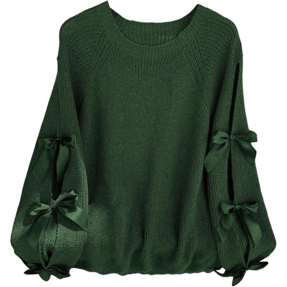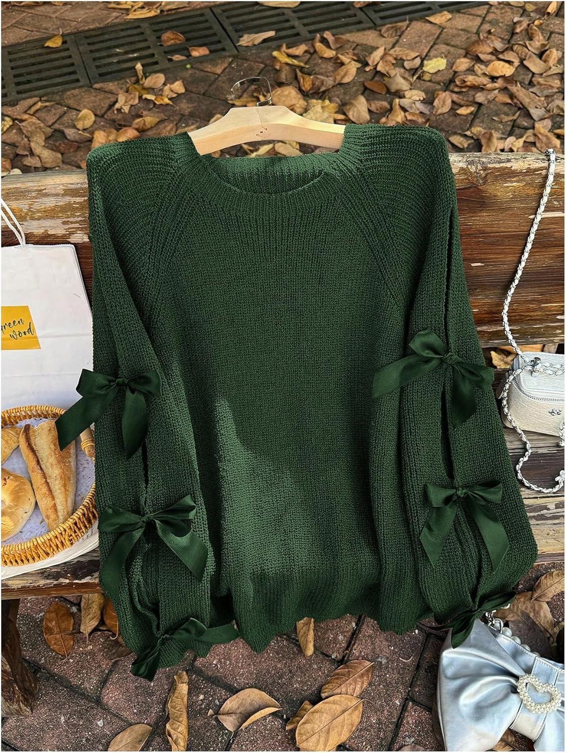 SOLY HUX Women’s Plus Size Sweaters Pullover Bowknot Long Sleeve Crew Neck Knit Fall Tops(Dark Green)