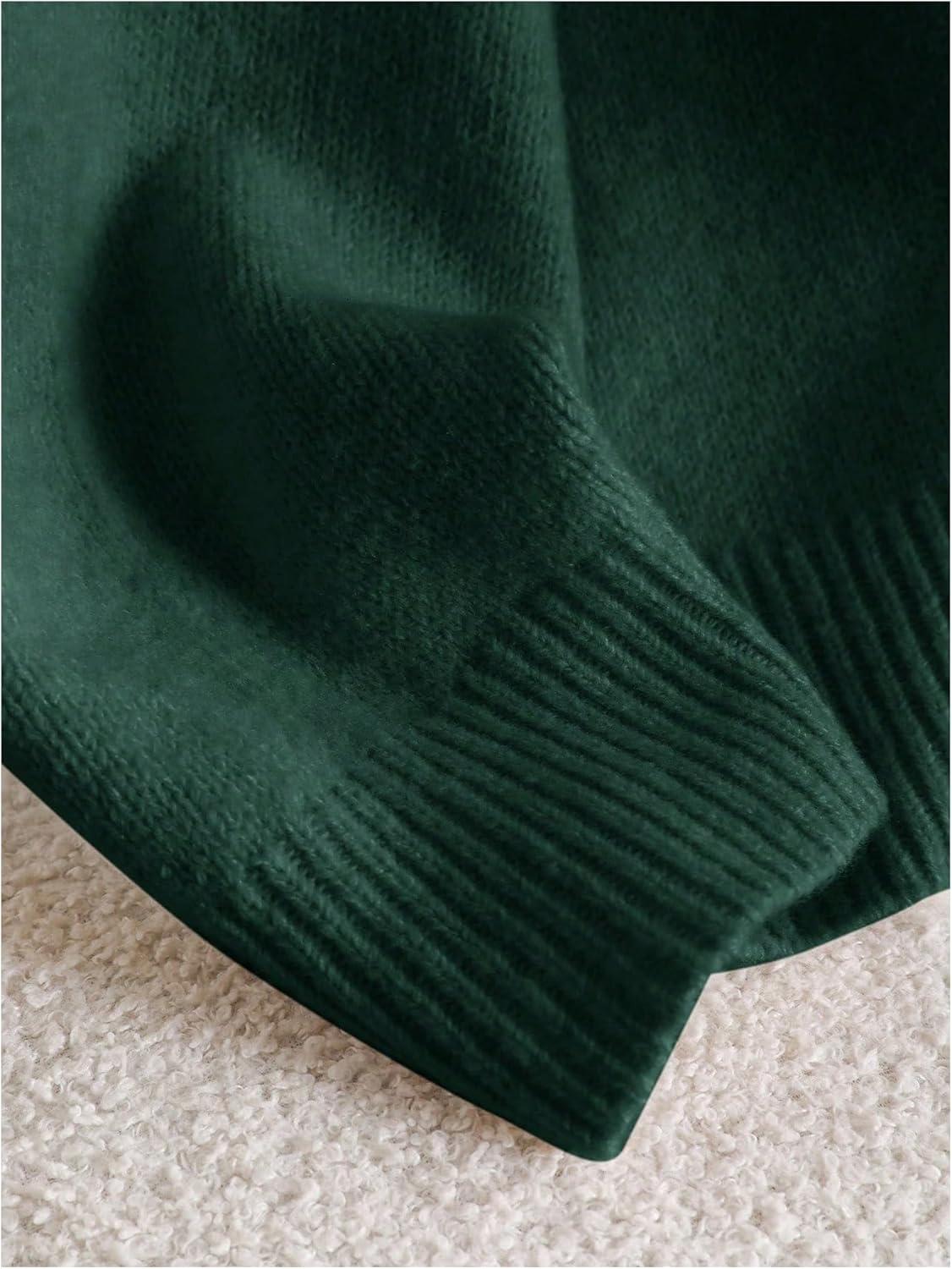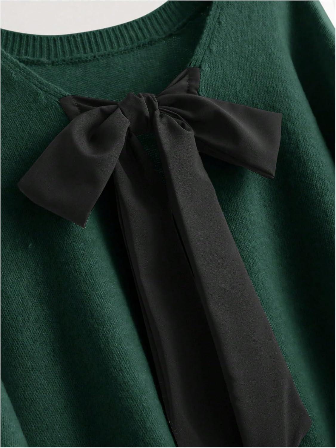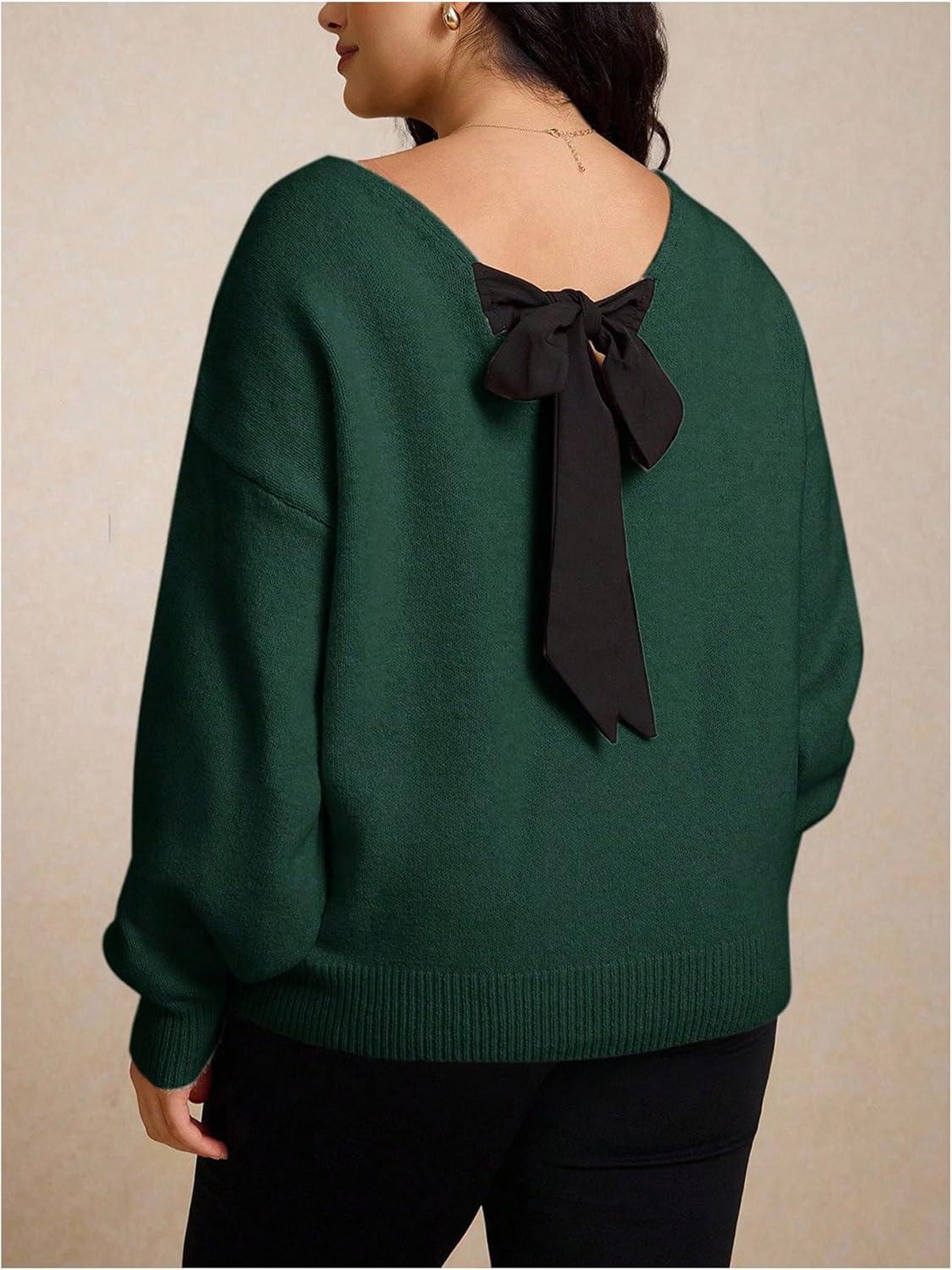 SOLY HUX Women’s Plus Size Sweaters Pullover Bowknot V Neck Long Sleeve Knit Tops Fall Clothes(Dark Green)