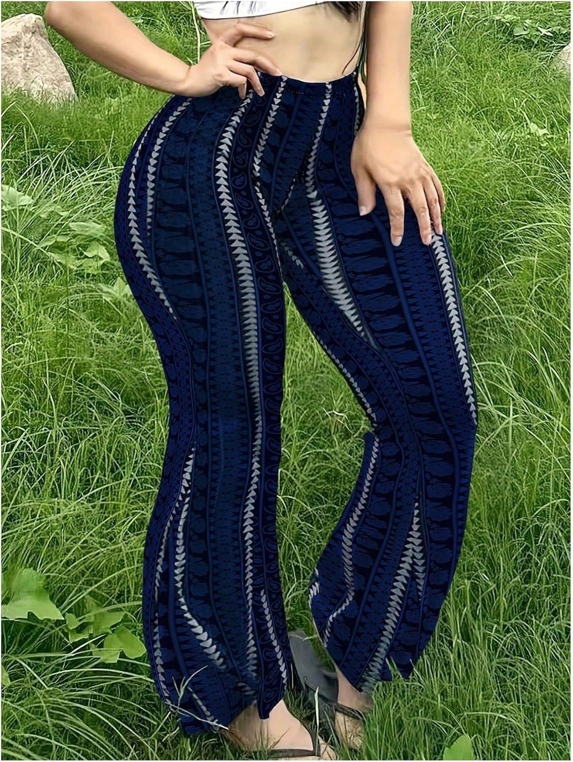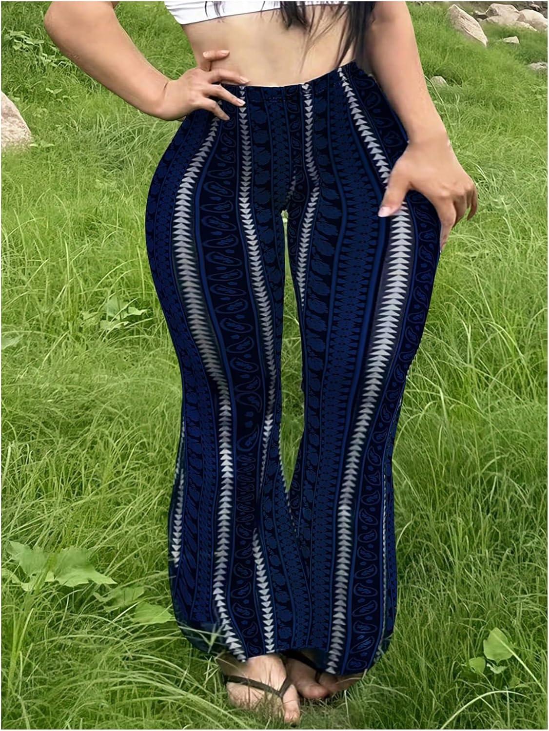SOLY HUX Women’s Plus Size Y2k Legging Printed Elastic Waist Bell Bottom Flare Leg Street Pants(Blue Geo)