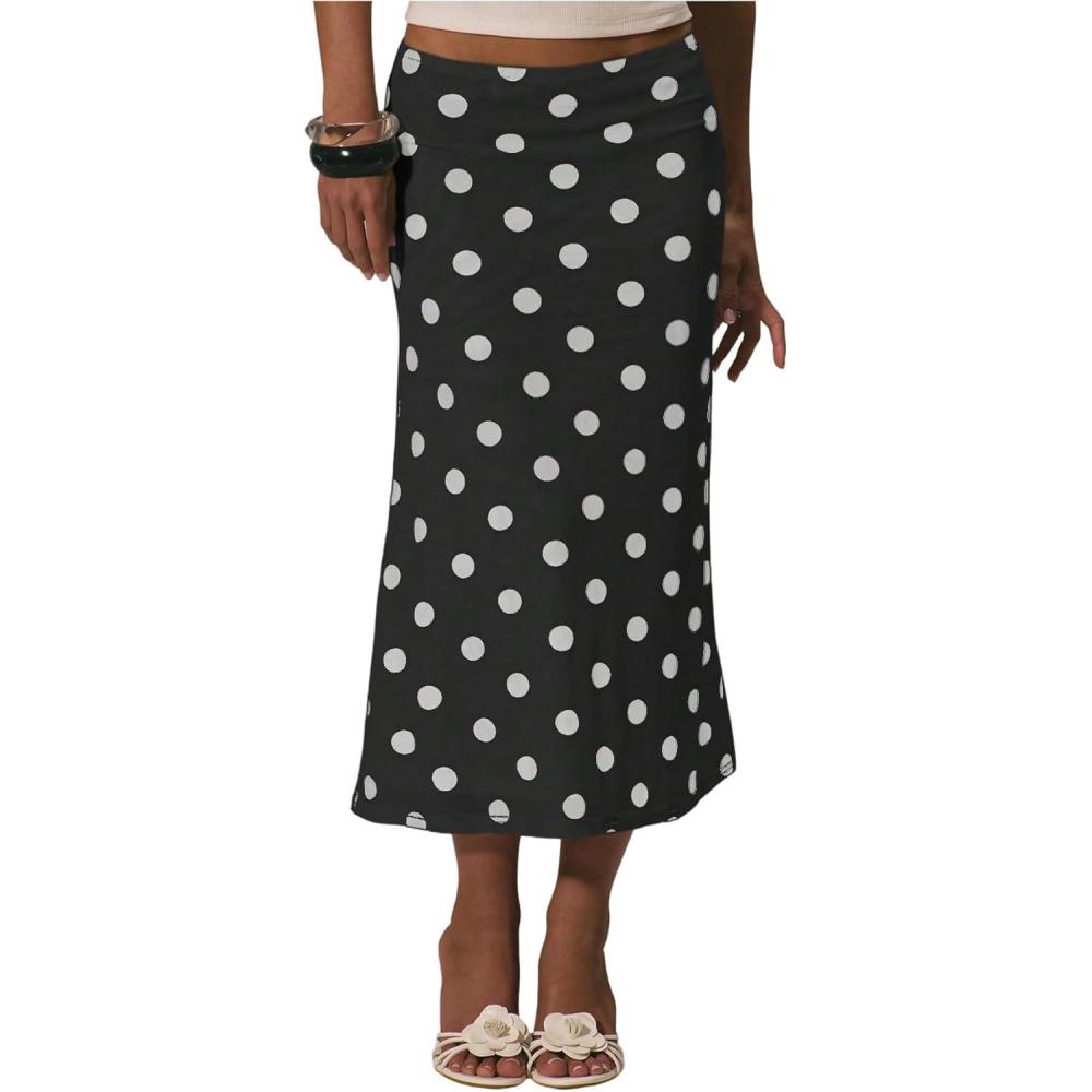SOLY HUX Women’s Polka Dots Midi Skirt Low Rise Summer Casual Going Out Skirts(Black Polka Dots)