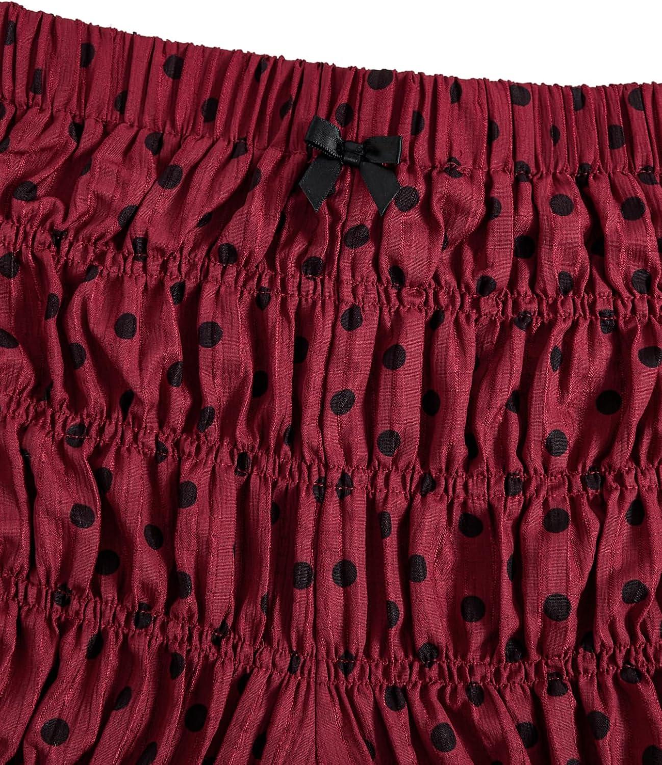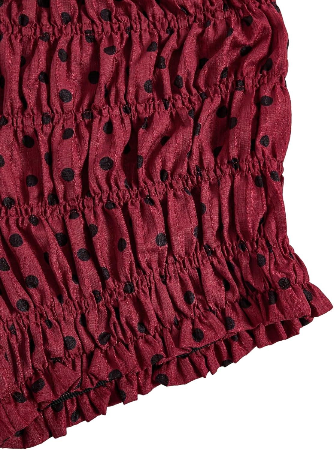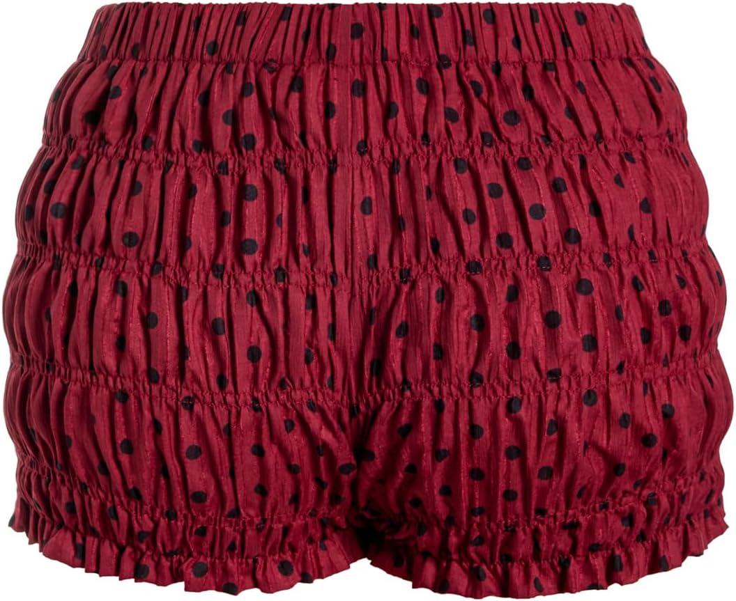 SOLY HUX Women’s Polka Dots Shorts Ruffle Mini Y2k Bloomers Elastic Waist Bottoms Micro Boyshorts(Burgundy Polka Dots)