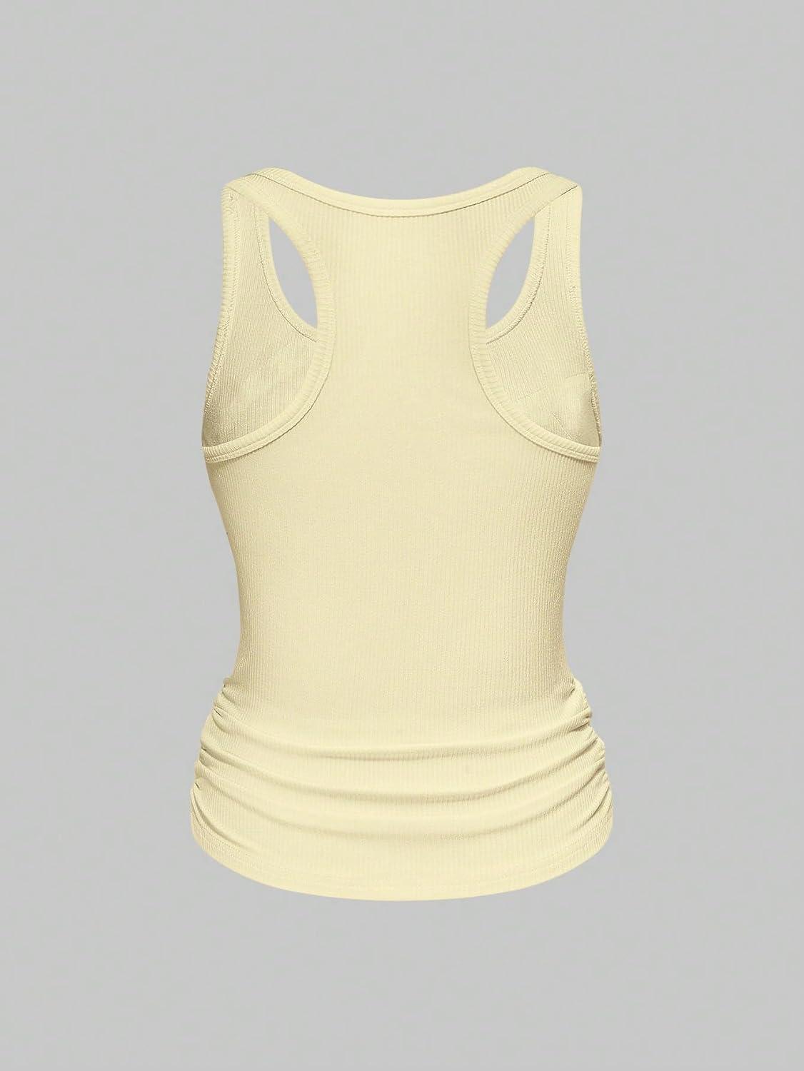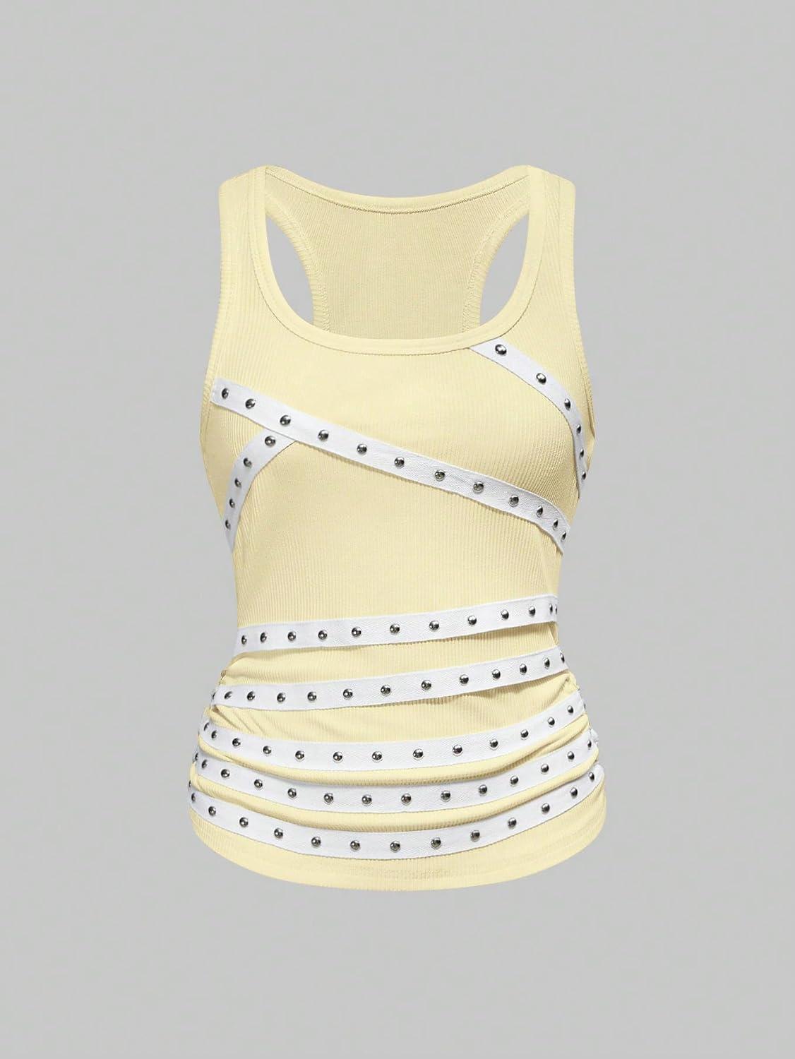 SOLY HUX Women’s Punk Studded Ruched Tank Top Scoop Neck Sleeveless Fitted Grunge Tops Streetwear(Pure Yellow)