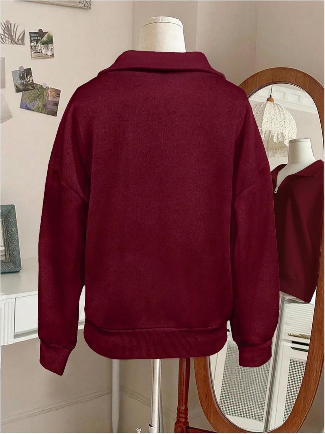 SOLY HUX Women’s Quarter Zip Sweatshirts Long Sleeve Mock Neck Hoodies Oversized Pullover Tops Fall Clothes(Plain Burgundy)