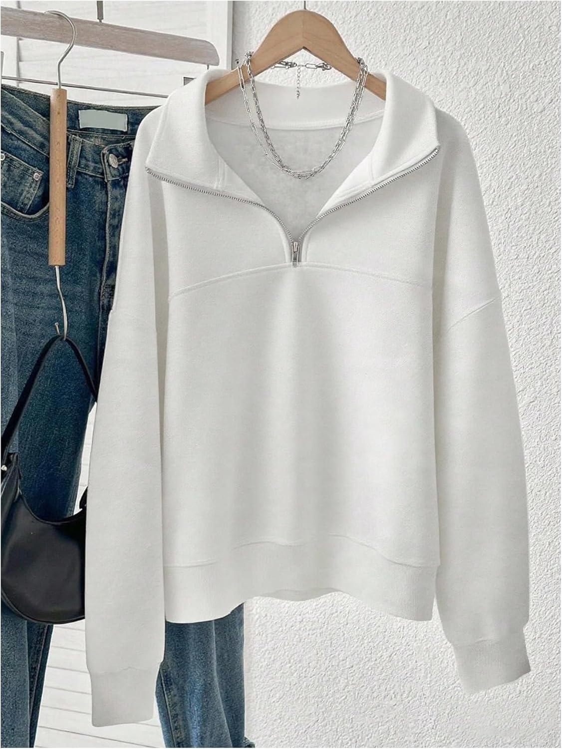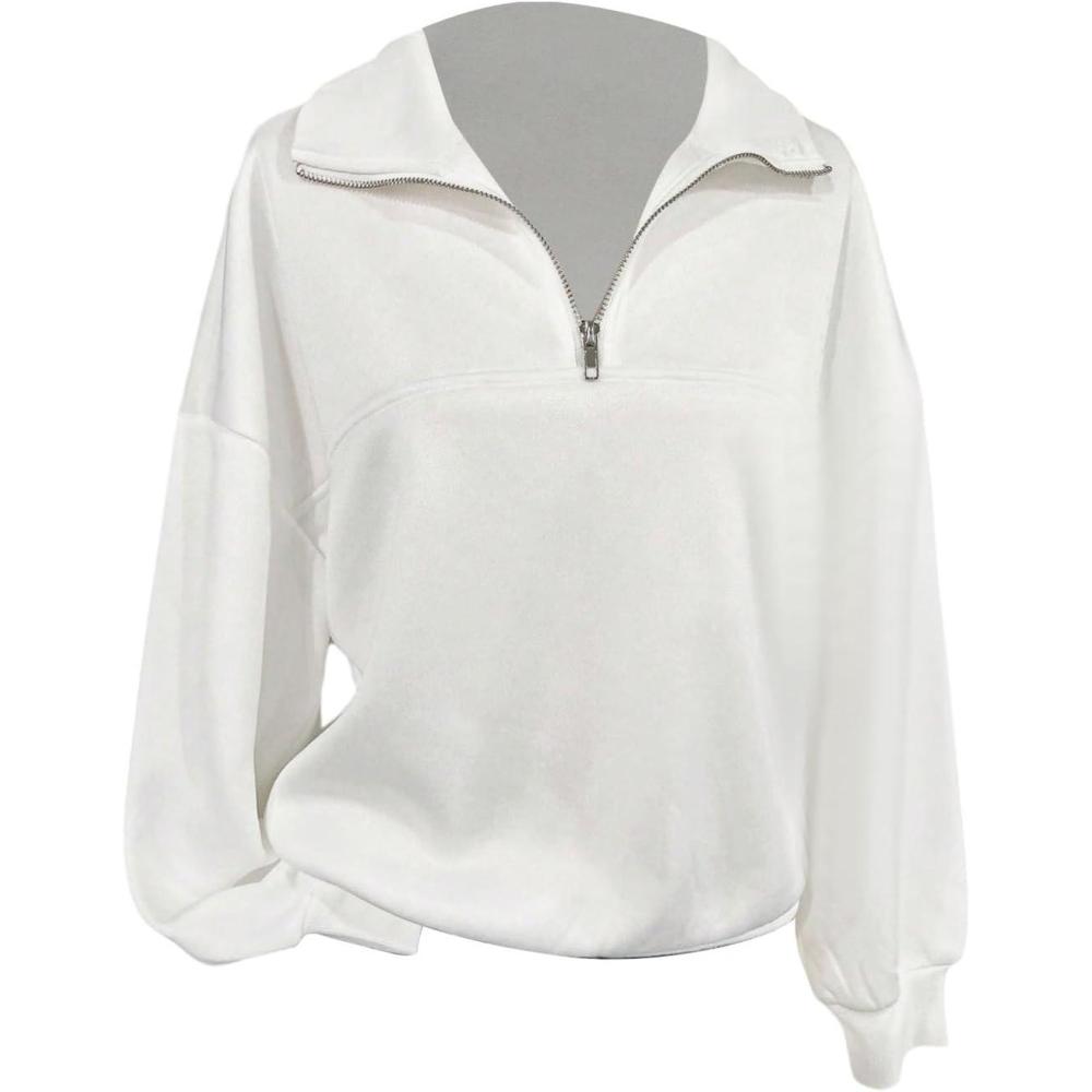 SOLY HUX Women’s Quarter Zip Sweatshirts Long Sleeve Mock Neck Hoodies Oversized Pullover Tops Fall Clothes(Plain White)