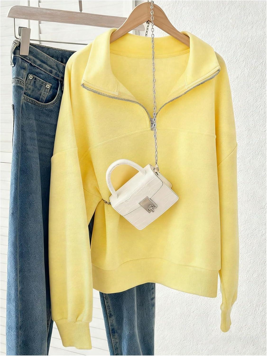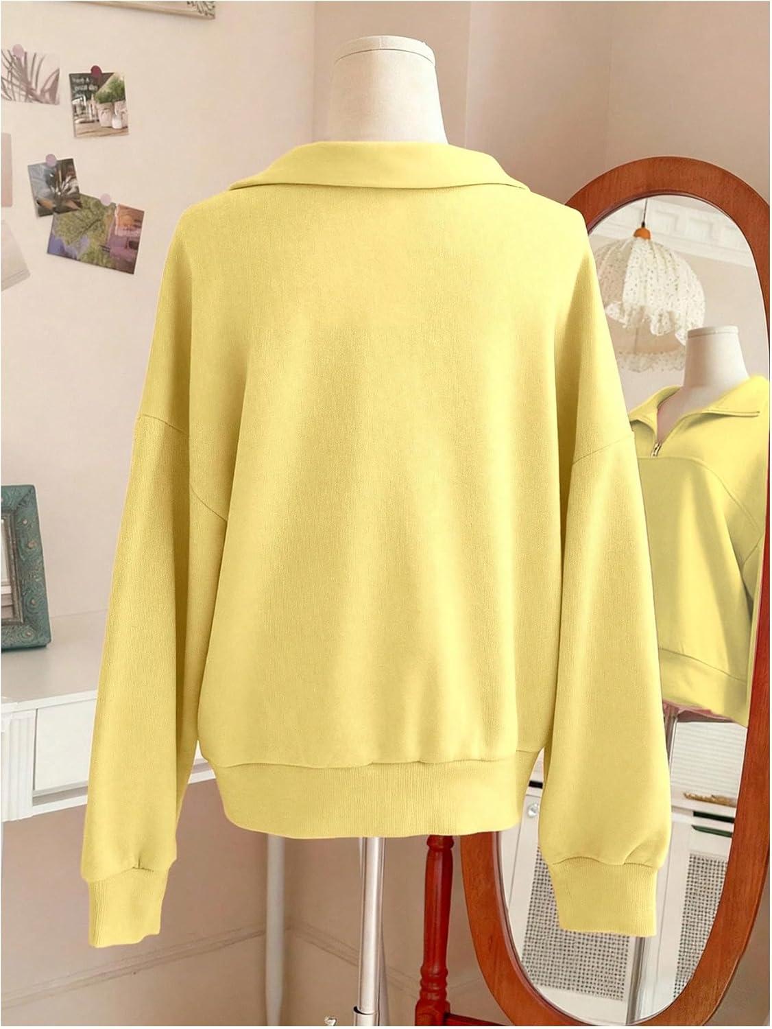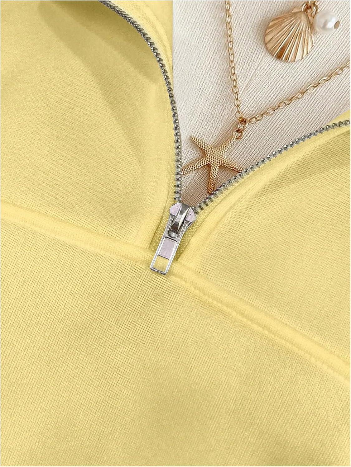 SOLY HUX Women’s Quarter Zip Sweatshirts Long Sleeve Mock Neck Hoodies Oversized Pullover Tops Fall Clothes(Plain Yellow)